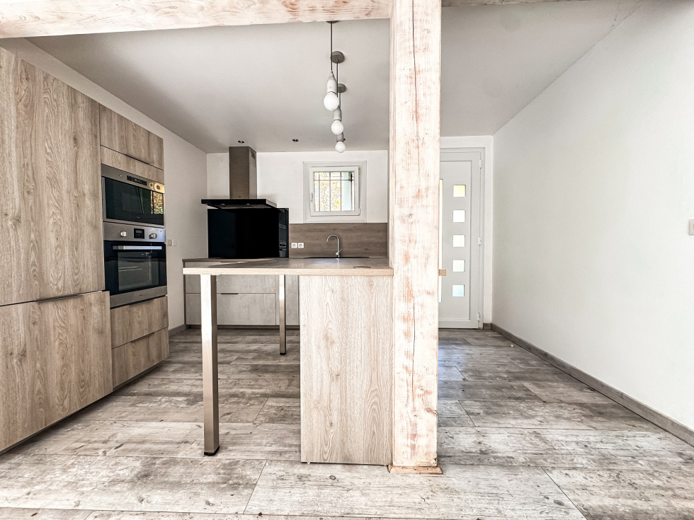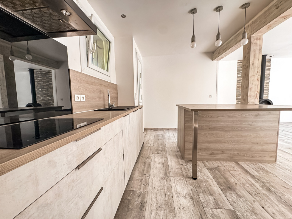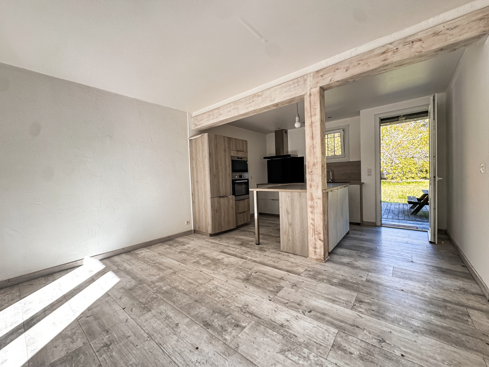 En hiver, le poêle à bois instaure une atmosphère chaleureuse et confortable. La cuisine ouverte, récente et entièrement équipée (four, micro-ondes, réfrigérateur intégré, lave-vaisselle intégré), a été pensée pour un usage à l’année comme pour des séjours prolongés. L’appartement comprend une chambre avec rangements, un cellier très pratique, une salle d’eau et des WC séparés ; un abri permet de stocker vélos, planches et matériel de plage.