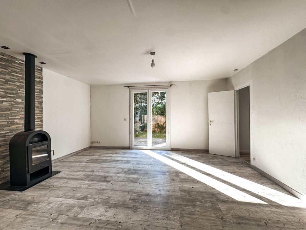 L’espace de vie, lumineux et traversant, s’ouvre de plain-pied sur deux terrasses et un grand jardin privatif d’environ 189 m², entièrement clos.