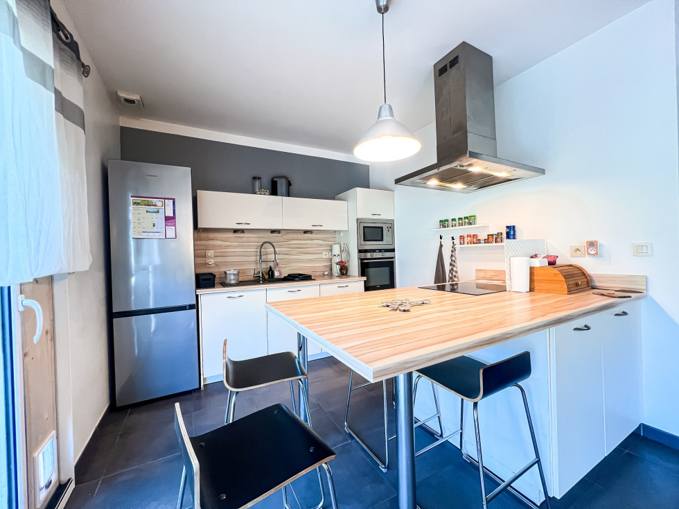Dès l’entrée, le charme opère : une grande pièce de vie lumineuse avec cuisine ouverte, idéale pour recevoir famille et amis dans une ambiance chaleureuse et conviviale.