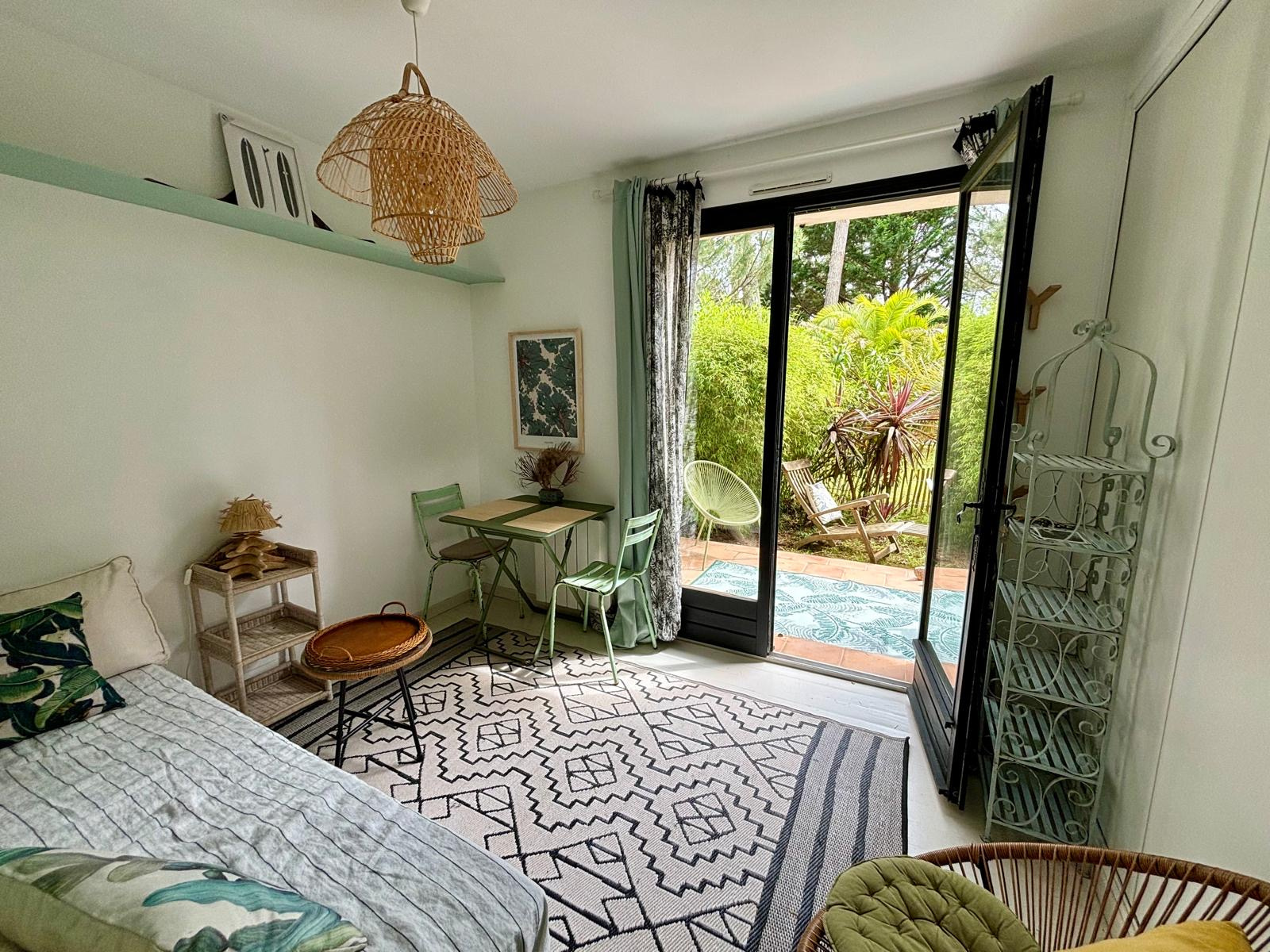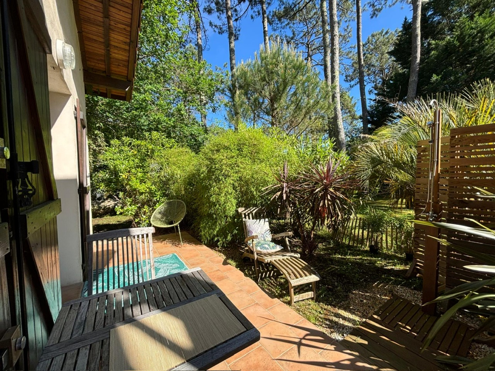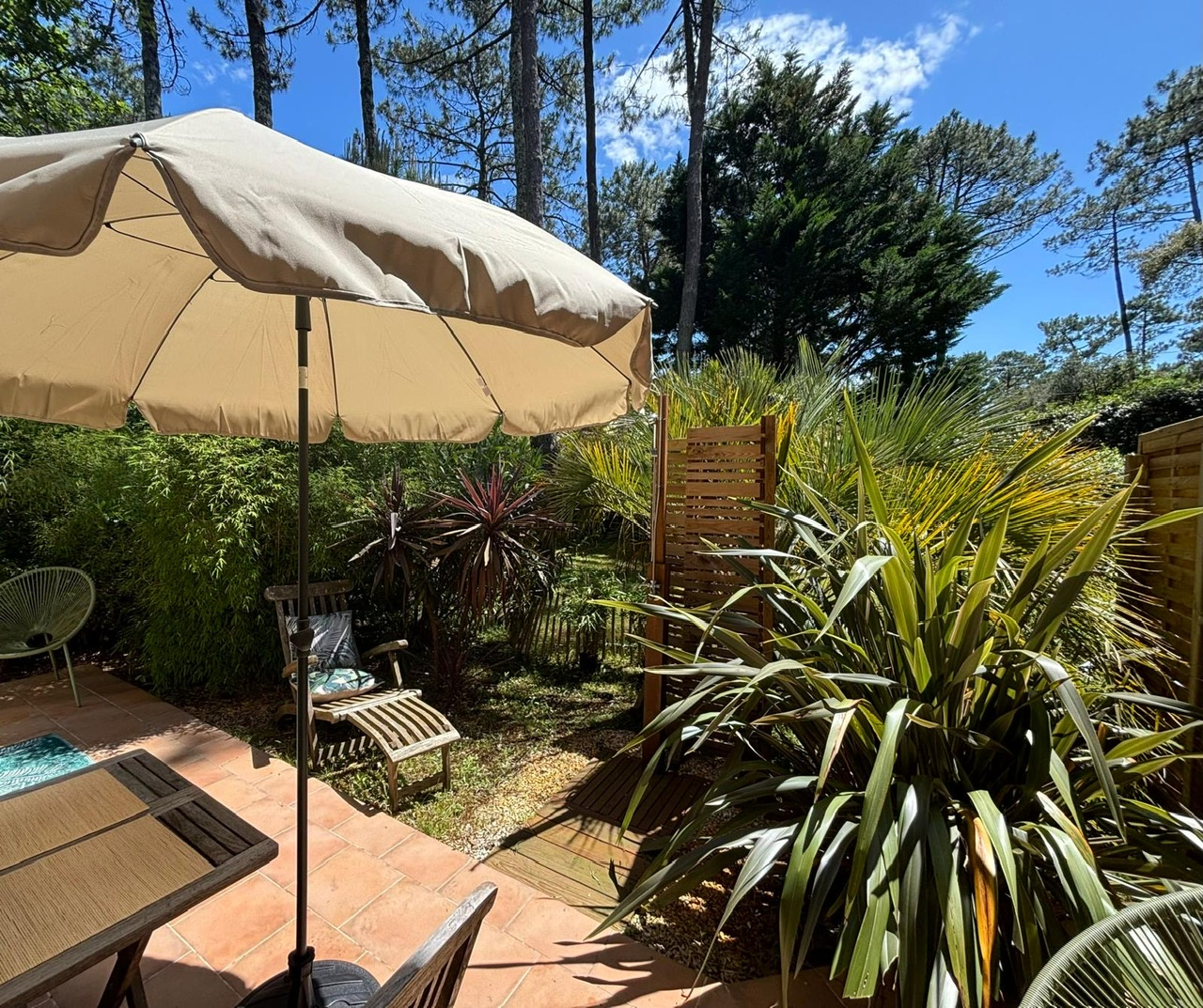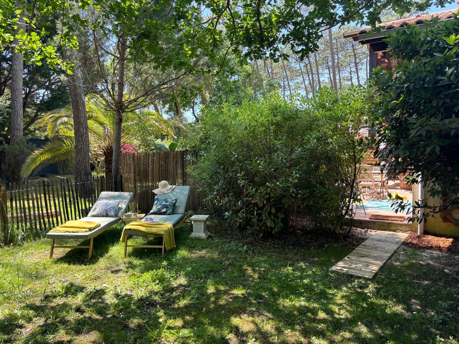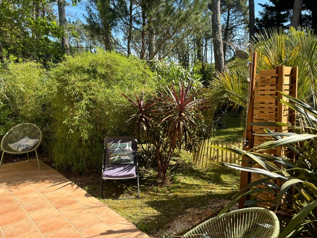 Dans le quartier calme de Contis sud, une bulle de verdure nichée dans les pins, bambous et palmiers, la piste cyclable et la plage sauvage à quelques pas, il suffira d'une balade à vélo d'à peine 10 minutes pour profiter de la trépidante station balnéaire de Contis, avant de revenir à la quiétude de ce charmant pied-à-terre où sa terrasse et son jardin vous attendent.