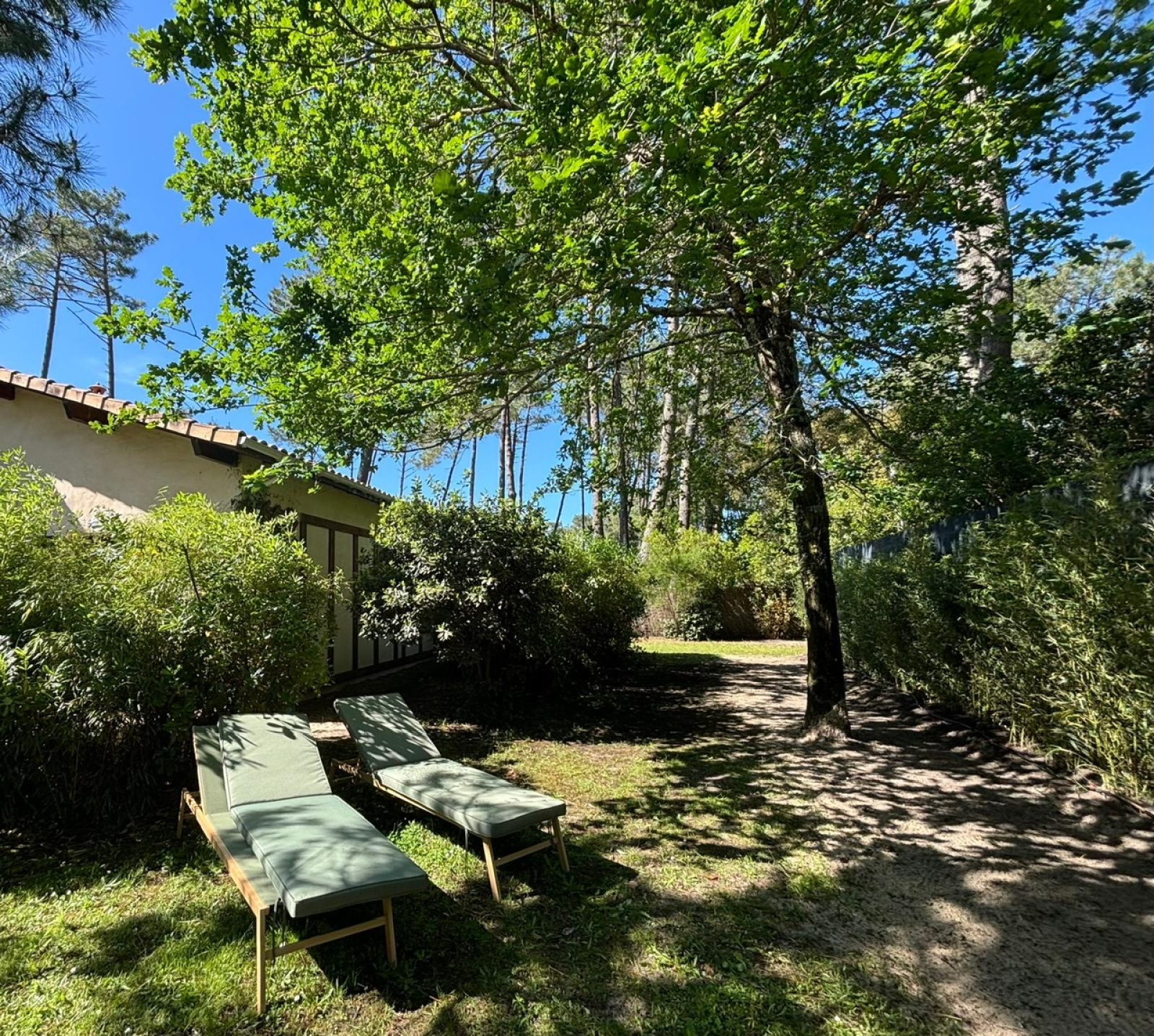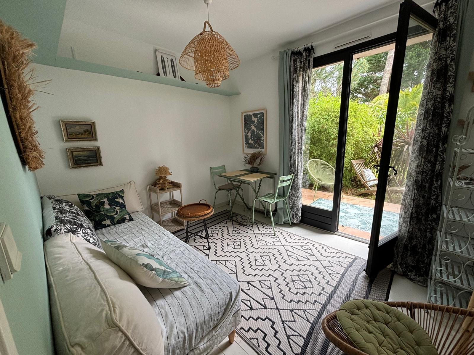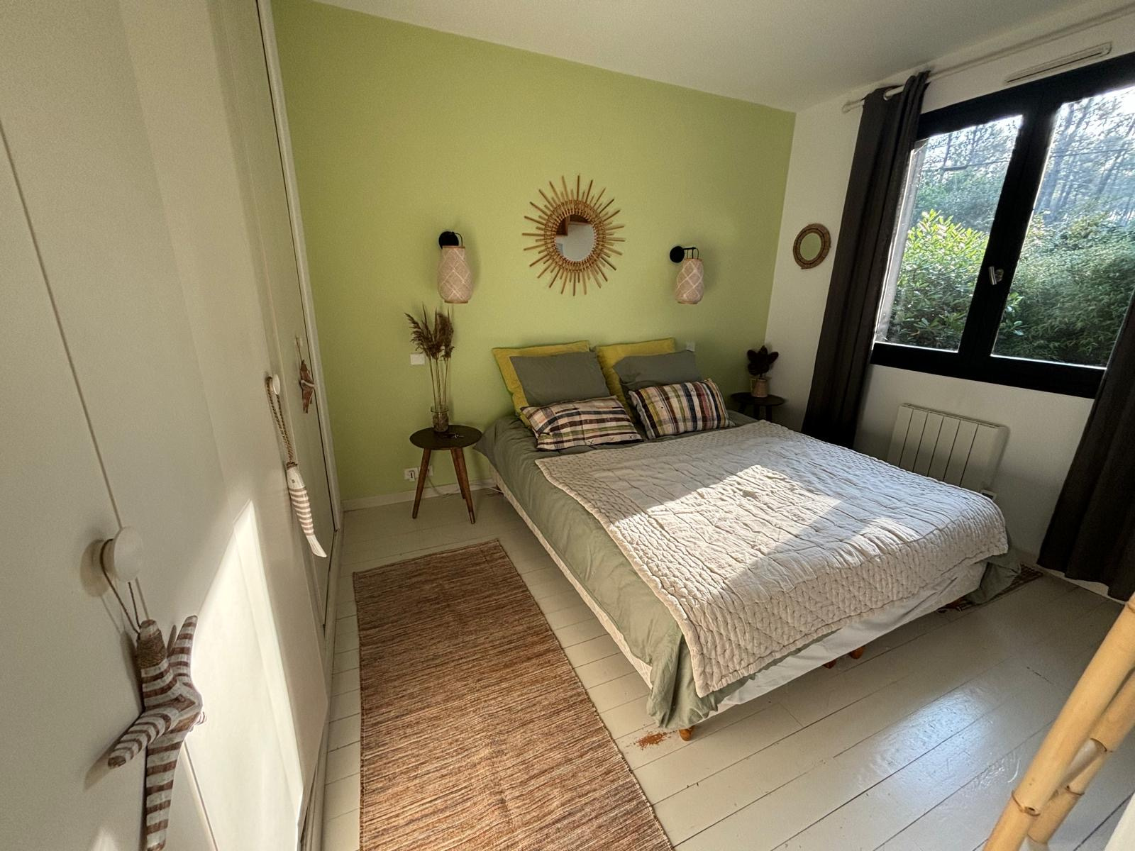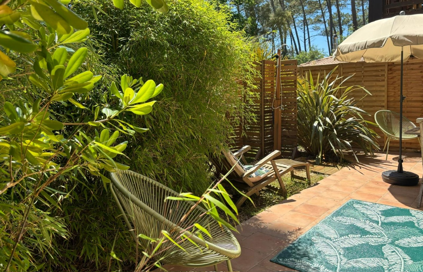 Dans le quartier calme de Contis sud, une bulle de verdure nichée dans les pins, bambous et palmiers, la piste cyclable et la plage sauvage à quelques pas, il suffira d'une balade à vélo d'à peine 10 minutes pour profiter de la trépidante station balnéaire de Contis, avant de revenir à la quiétude de ce charmant pied-à-terre où sa terrasse et son jardin vous attendent.