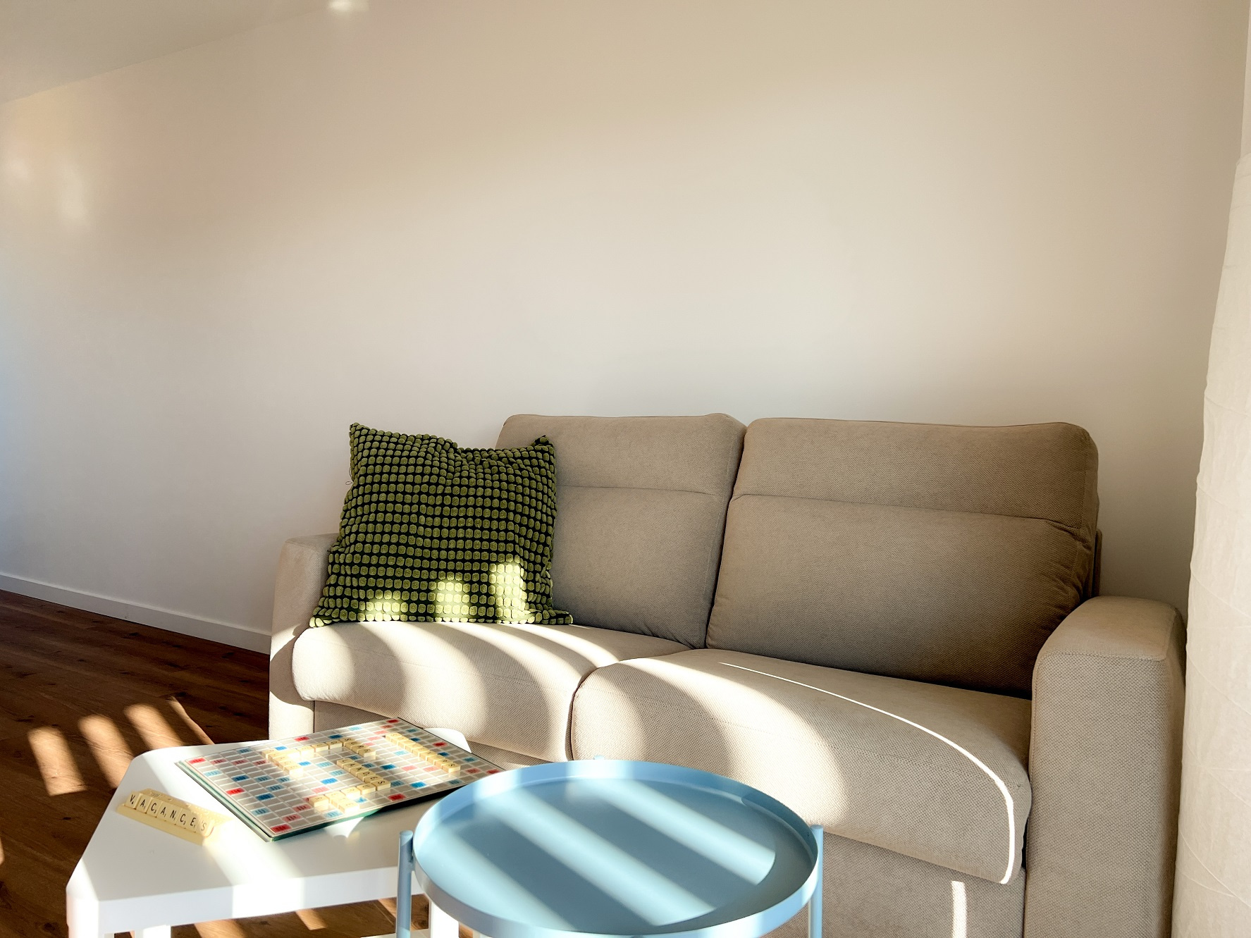 Ce logement lumineux se compose d’une chambre confortable, d'une cuisine ouverte sur un salon équipé d'un canapé convertible, d’une salle d’eau ainsi que de WC séparés.