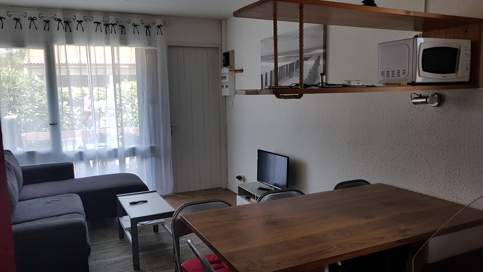 Impeccable appartement de plain-pied avec double terrasse 1 chambre avec 2 lits simples et un canapé convertible (160x200). pouvant accueillir jusqu'à 4 personnes. Accueillant, il offre une double terrasse, cuisine ouverte sur pièce de vie , salle de bains séparée et wc.
