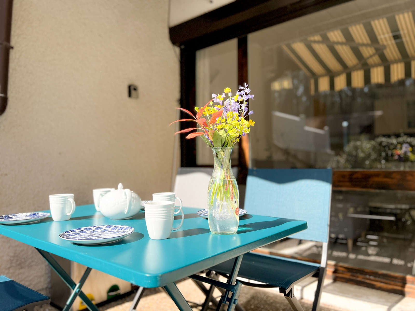 À l’extérieur, le rythme ralentit naturellement. Dès le matin, la terrasse exposée Est accueille les petits-déjeuners au soleil levant, dans une lumière douce et paisible. En fin de journée, l’exposition Ouest invite à prolonger les soirées autour d’un apéritif, à l’heure où le ciel se pare de teintes dorées.