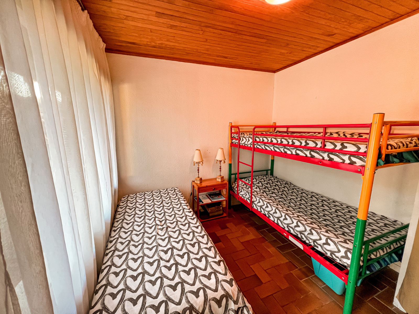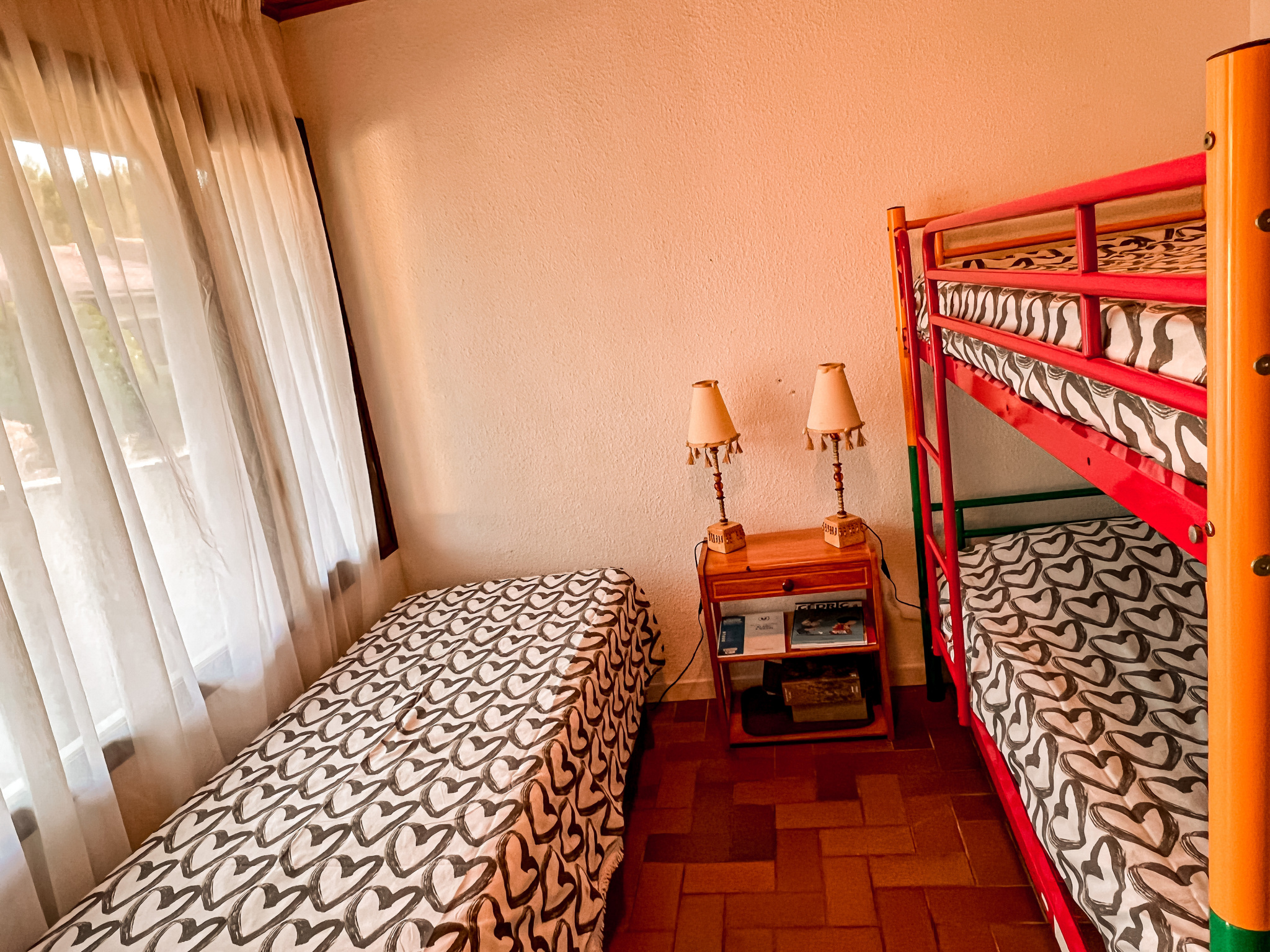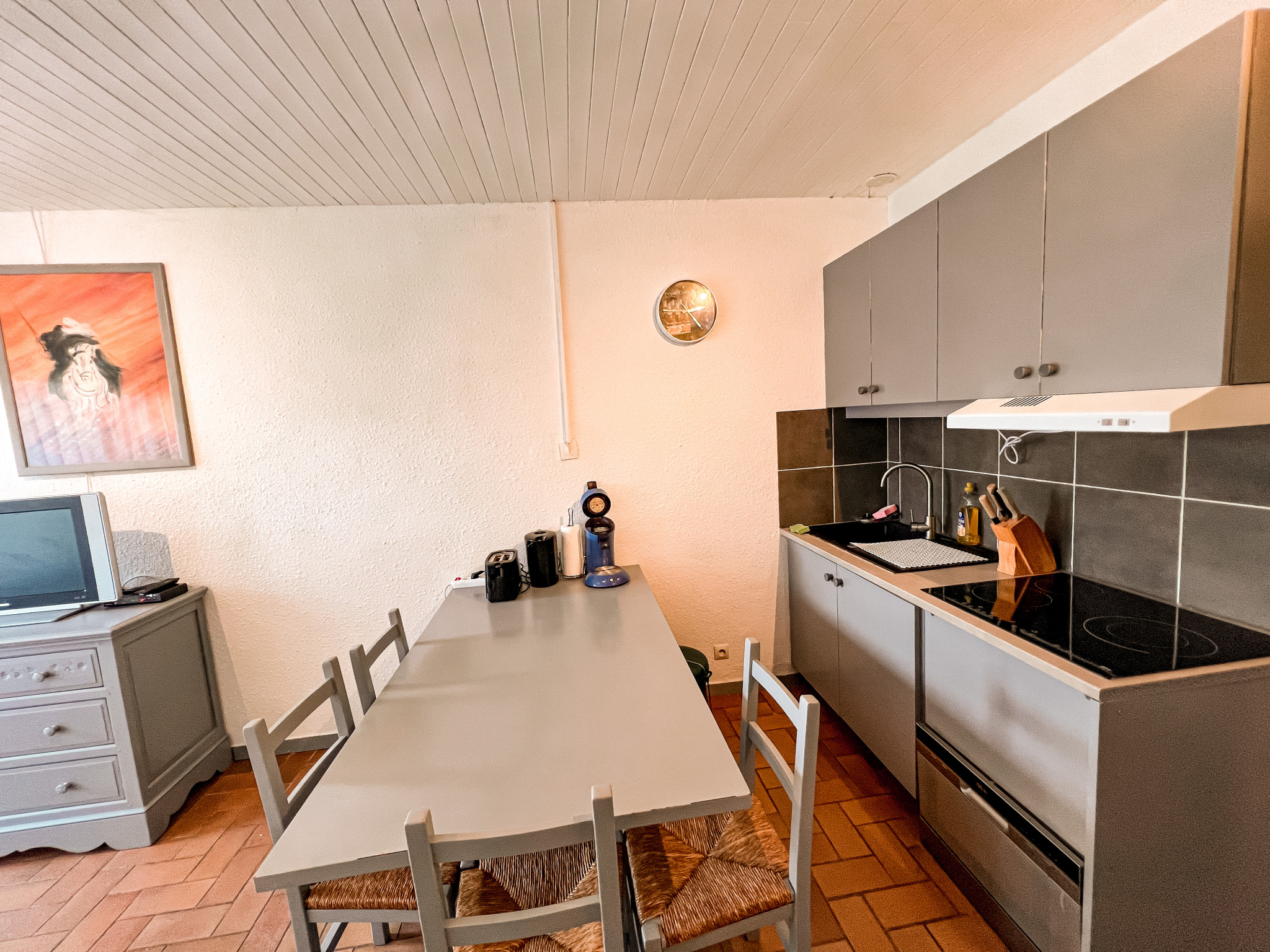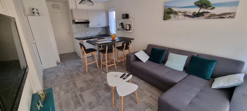 Il se compose de deux chambres (1 avec 1 lit de 140 cm+ 1 avec lit mezzanine 2 couchages + 1 lit simple, cuisine à l'américaine entièrement équipée (lave vaisselle, four, lave linge, plaque 2 feux ). Salon avec TV et canapé .Salle d'eau avec baignoire - WC séparés.