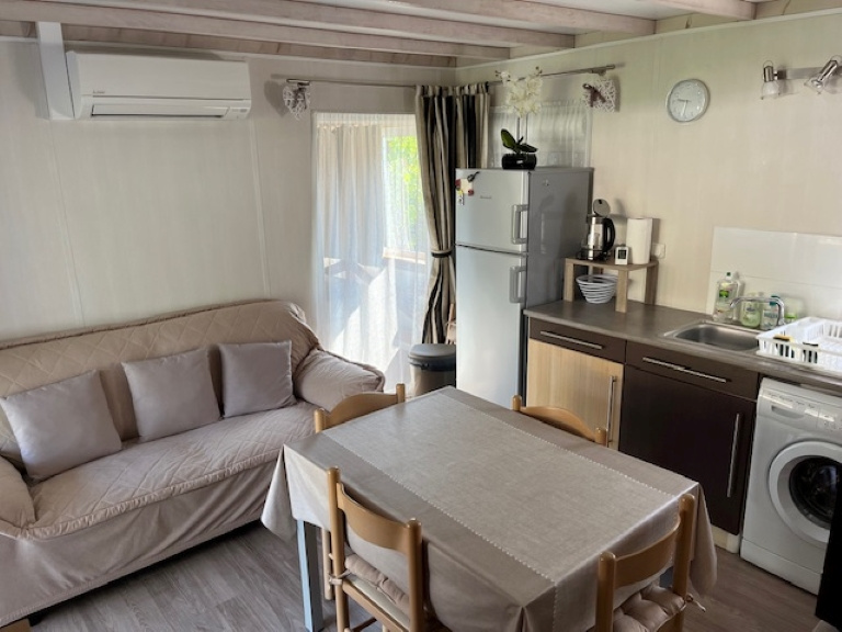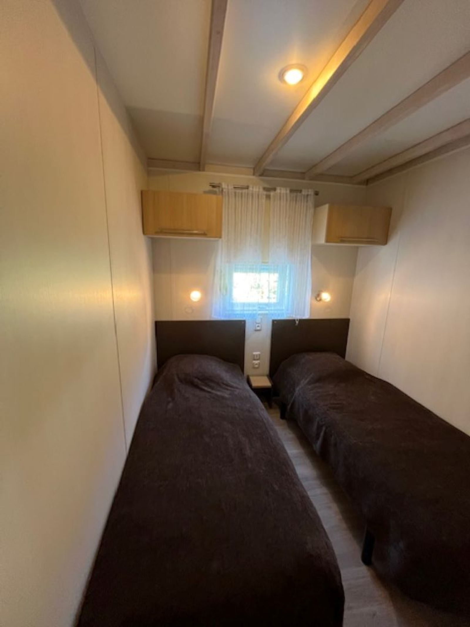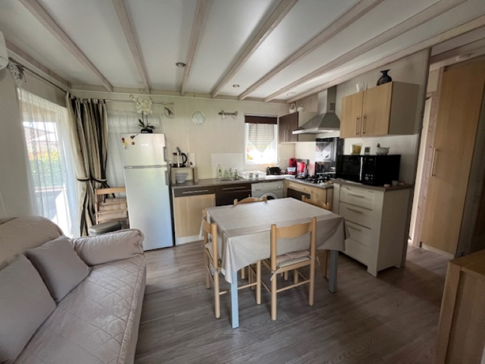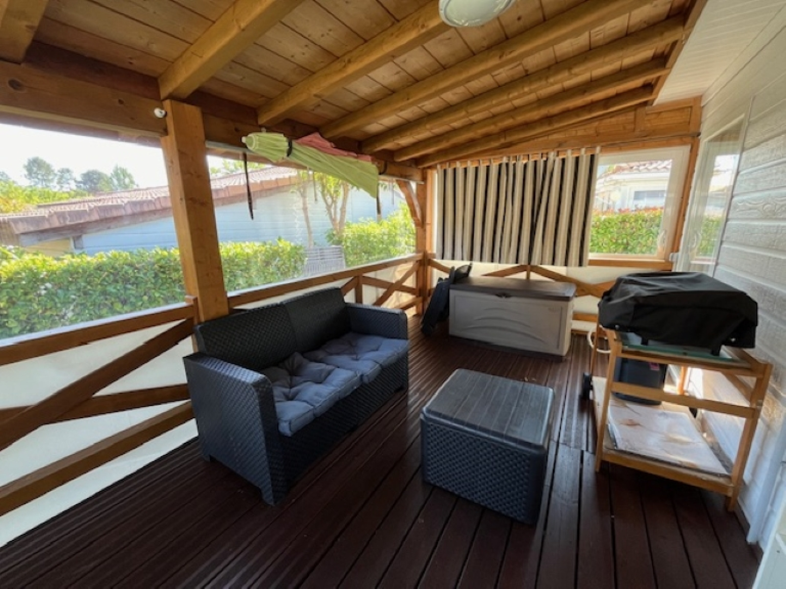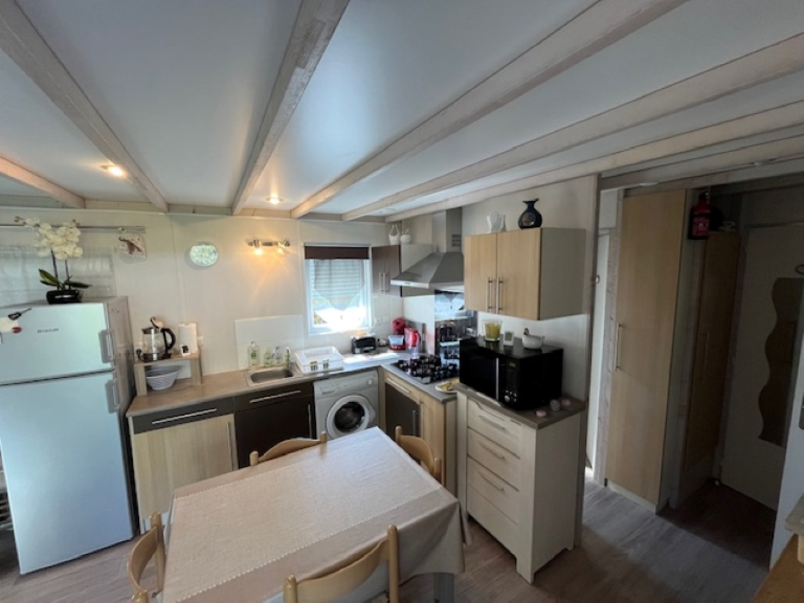 Venez profiter de vacances en famille dans un parc résidentiel de loisir, idéalement situé, avec accès à toutes les animations et infrastuctures du camping 5* : piscine, tobogan, lagon et diverses animations. Ce chalet tout confort d'environ 32 m² dispose d'une terrasse couverte et d'un terrain de 200 m² non clos. Il comprend un séjour avec cuisine équipée, 3 chambres offnt 1 lit double, 2 lits simple et lits superposés, une salle d'eau et des WC séparés.