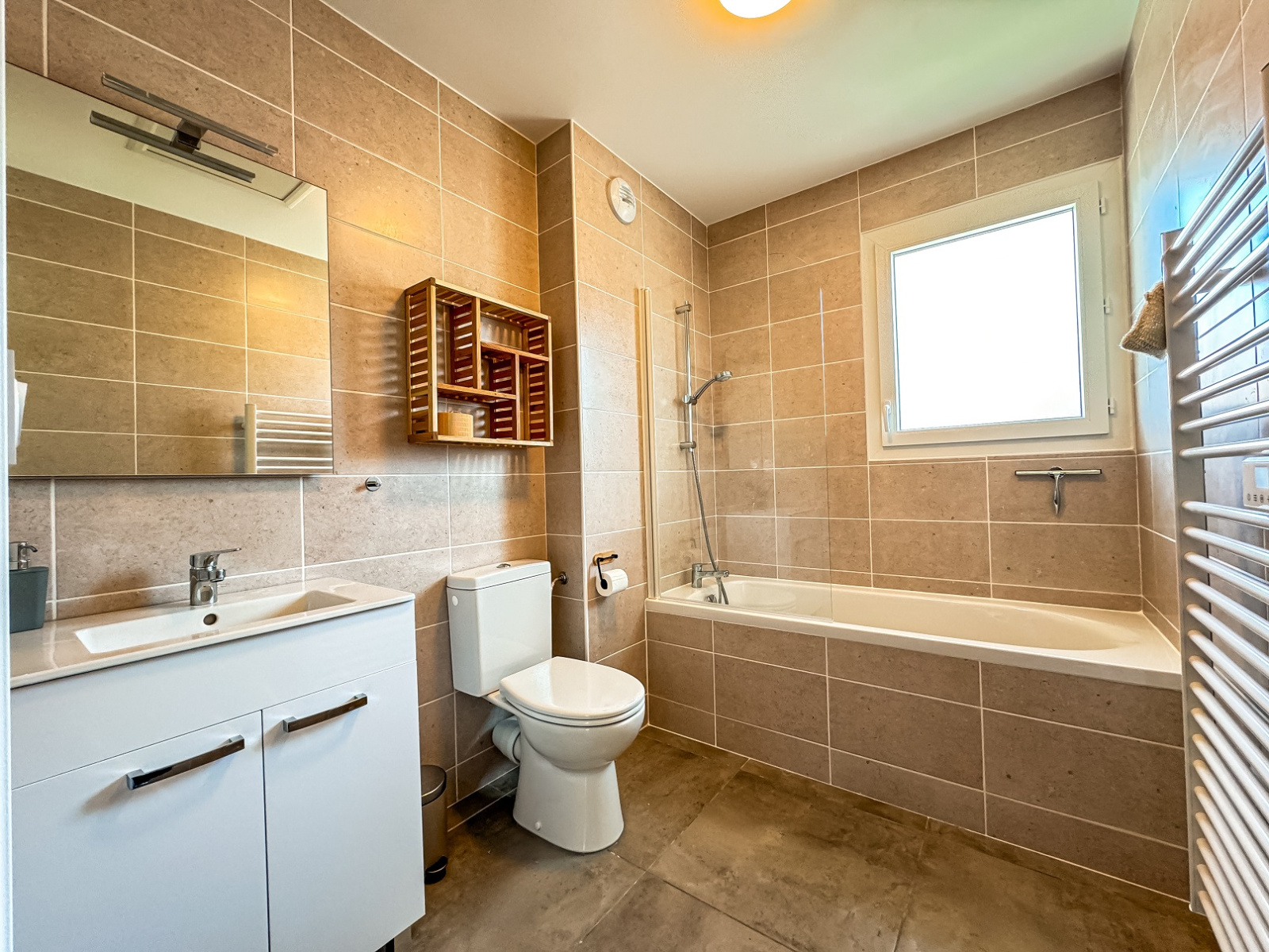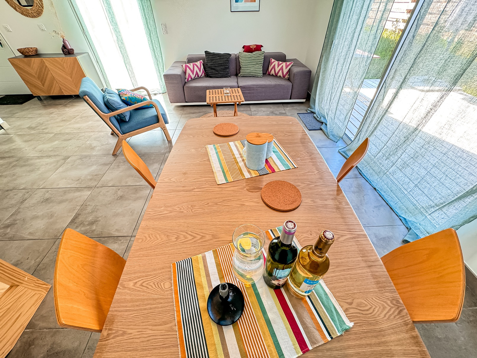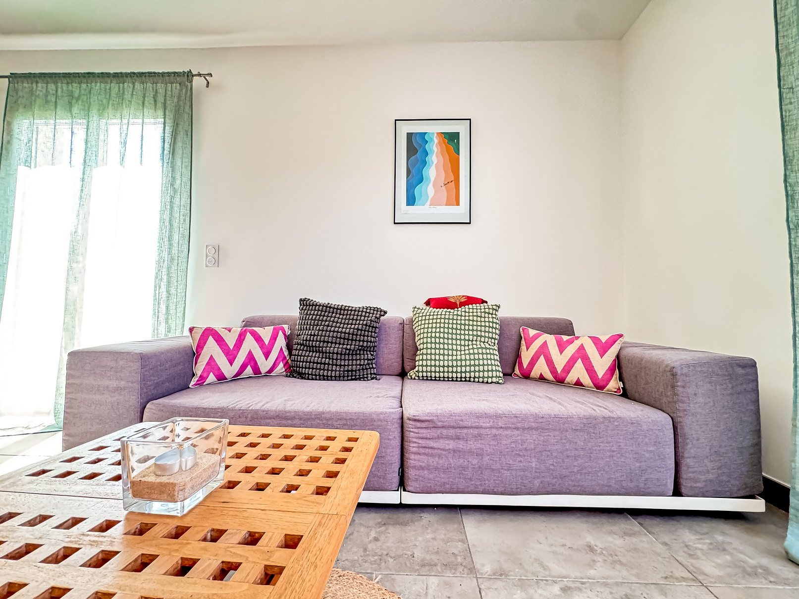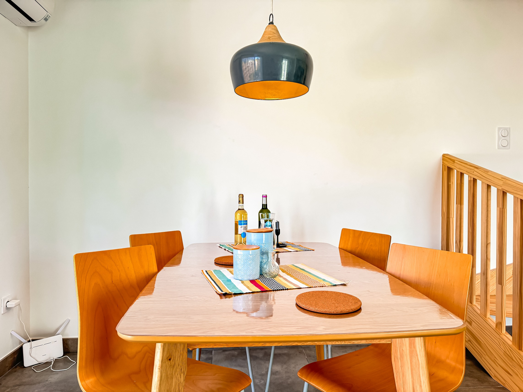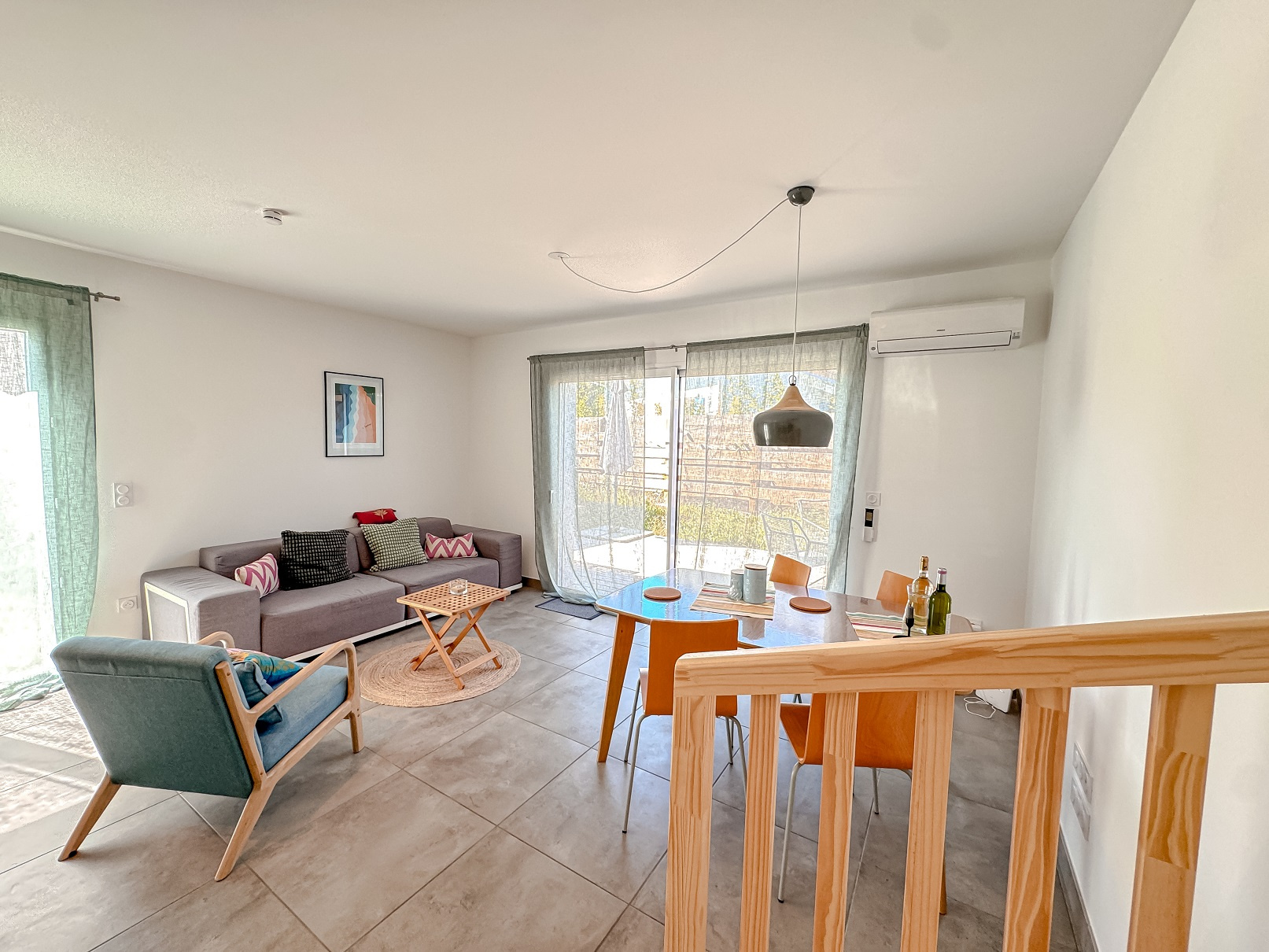 Maison neuve en duplex, mitoyenne d'un côté, au cœur du village de Lit et Mixe tout en étant au calme, idéale pour une famille de 4 personnes. Vous entrez sur une cuisine équipée (machine à café, bouilloire, plaque, four, réfrigérateur/congélateur, lave-vaisselle) et ouverte sur la pièce de vie. La grande baie vitrée donnant sur une agréable terrasse en bois et son jardin apporte une ambiance lumineuse et chaleureuse au lieu. Une salle d'eau avec WC et une buanderie complètent ce rez-de-jardin. A l'étage, 2 chambres et une salle de bain avec WC. Les finitions sont soignées et le mobilier sélectionné avec goût contribueront à vous y sentir comme chez vous. Détendez-vous dans le salon extérieur, propice au repos.