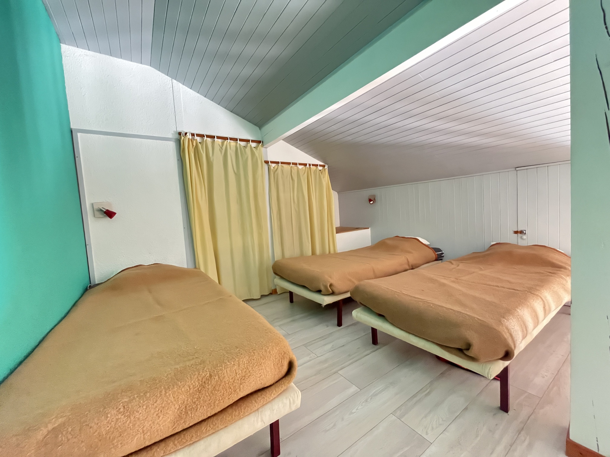 À l’étage, la mezzanine offre un espace nuit cosy avec trois lits simples, parfait pour accueillir famille ou amis.