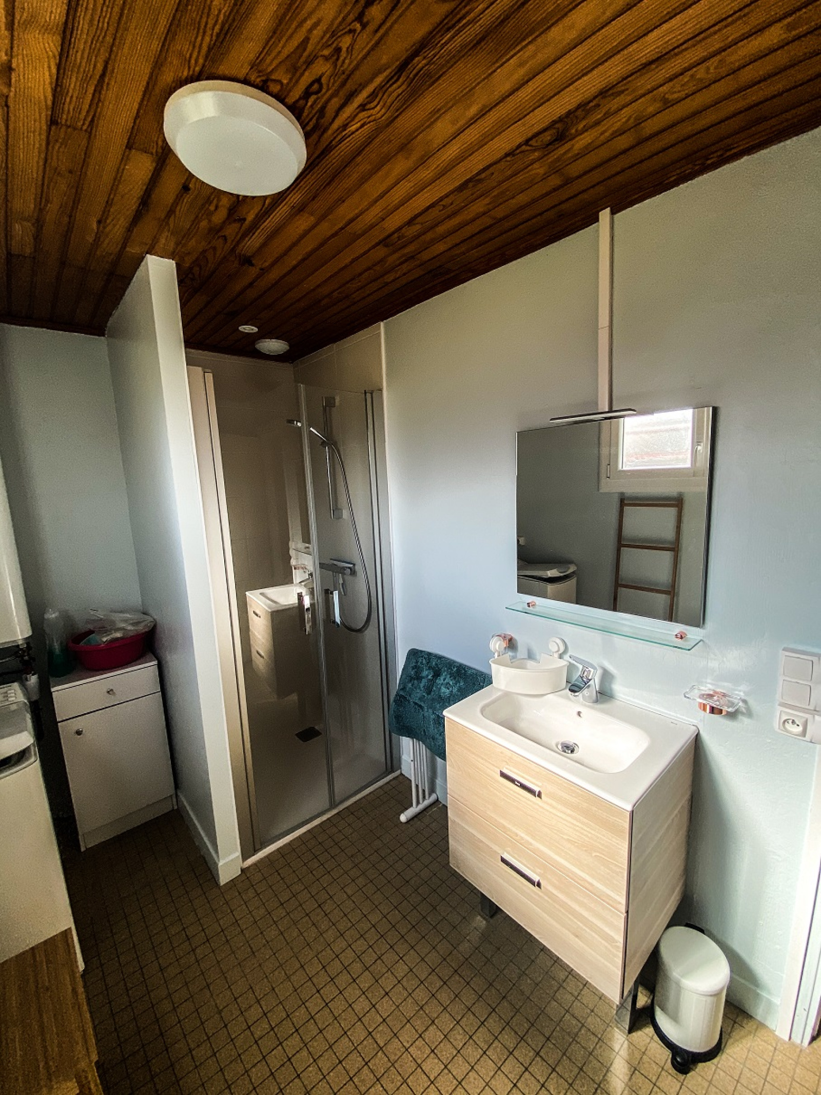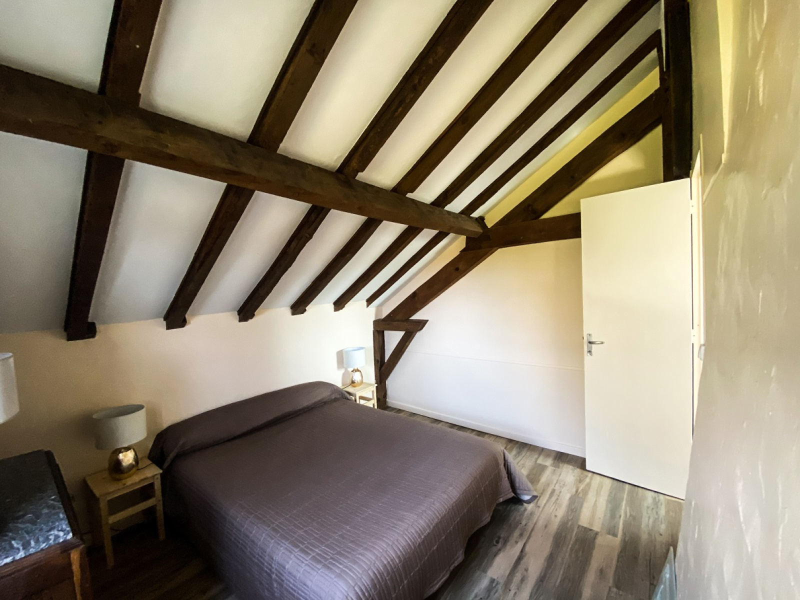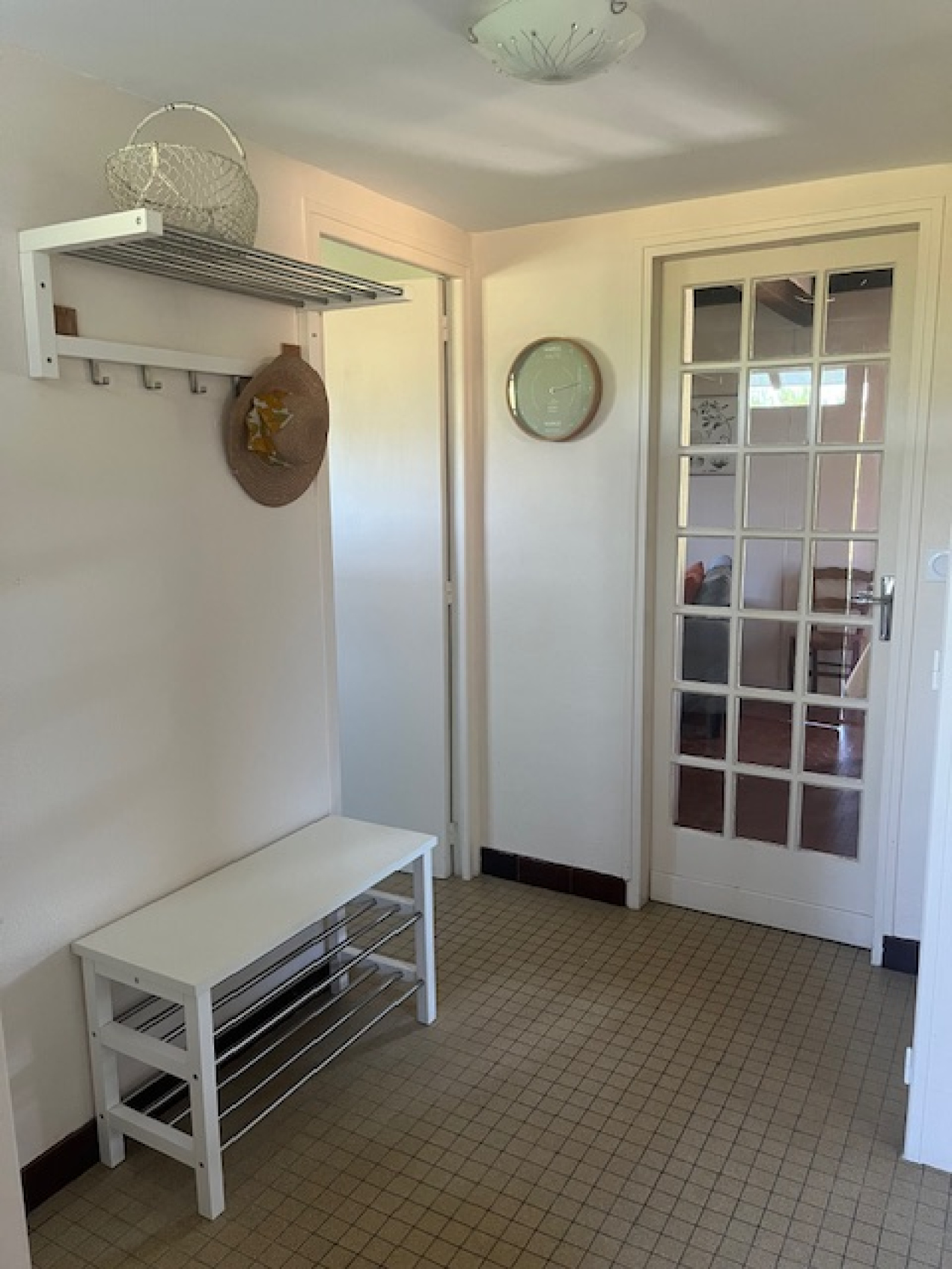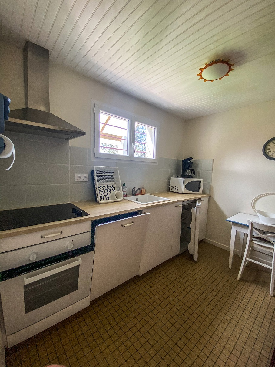 Un salon séjour avec cheminée , portes fenetres donnant sur le jardin entièrement clos. Cuisine séparée parfaitement équipée, salle d'eau et wc séparés.