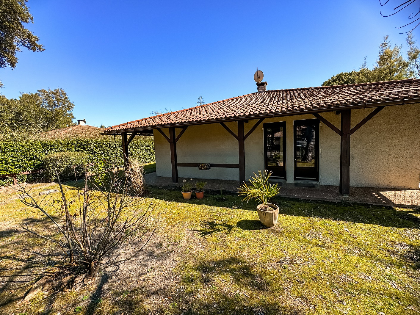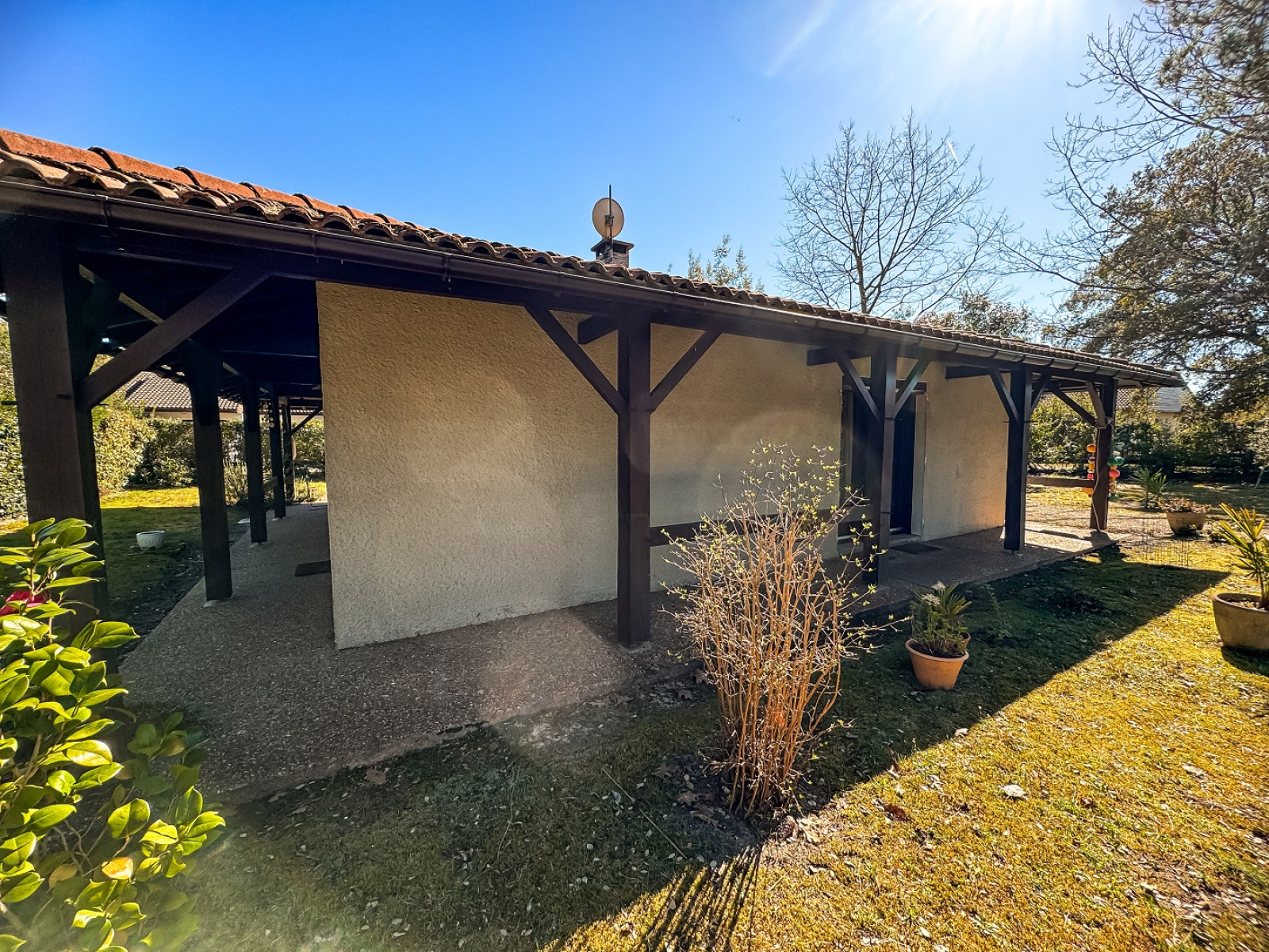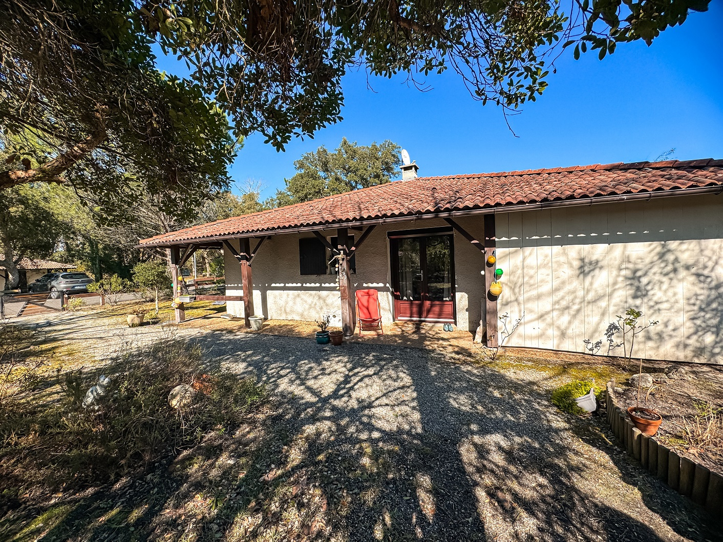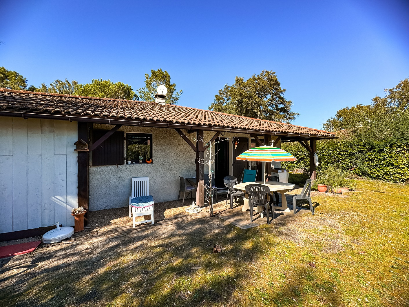 Pavillon landais offrant 3 chambres avec des lits doubles. A l'intérieur, une salle d’eau avec douche à l’italienne, WC séparés et pièce de vie avec cuisine équipée ouverte menant à une terrasse et au jardin.