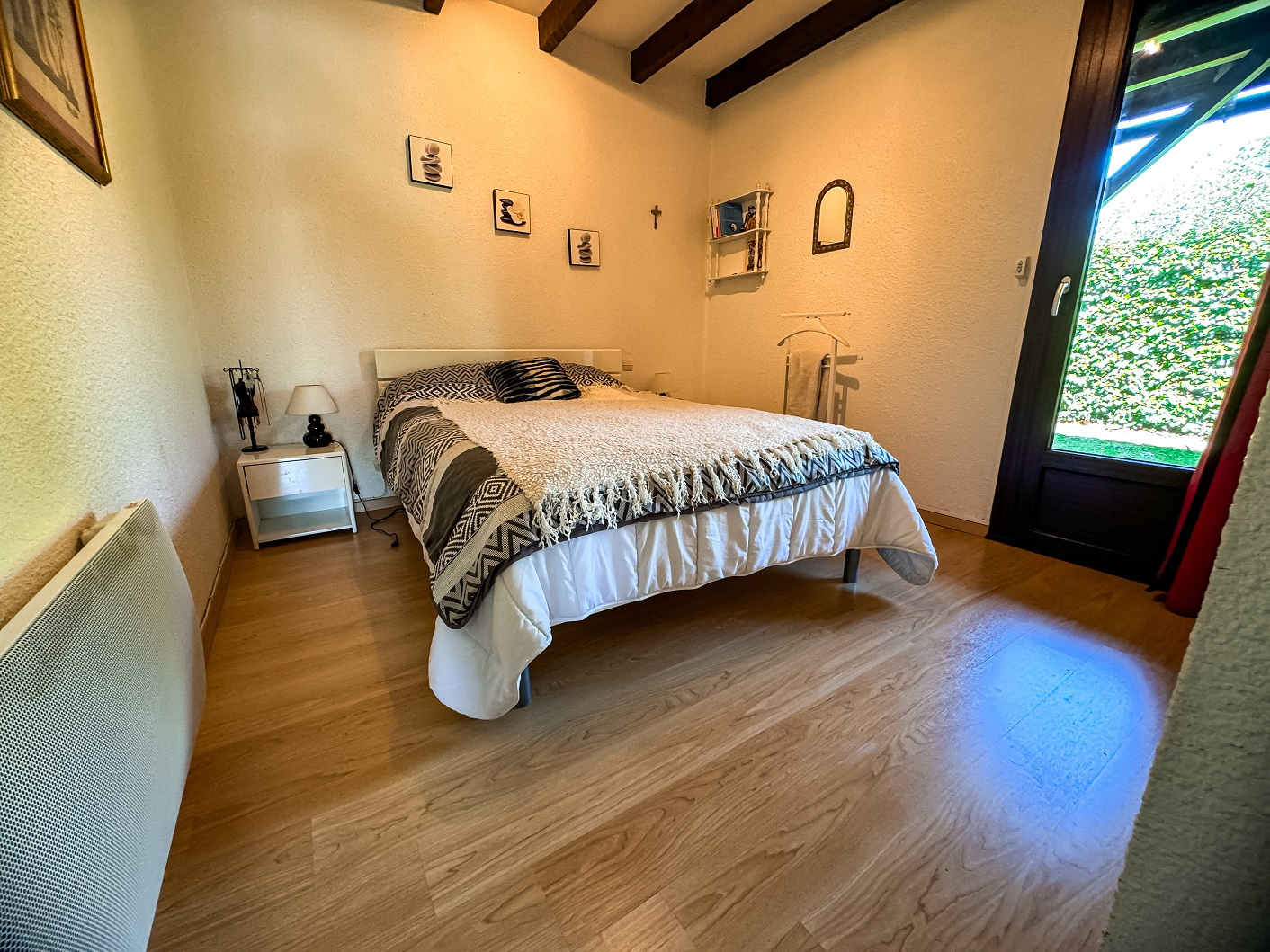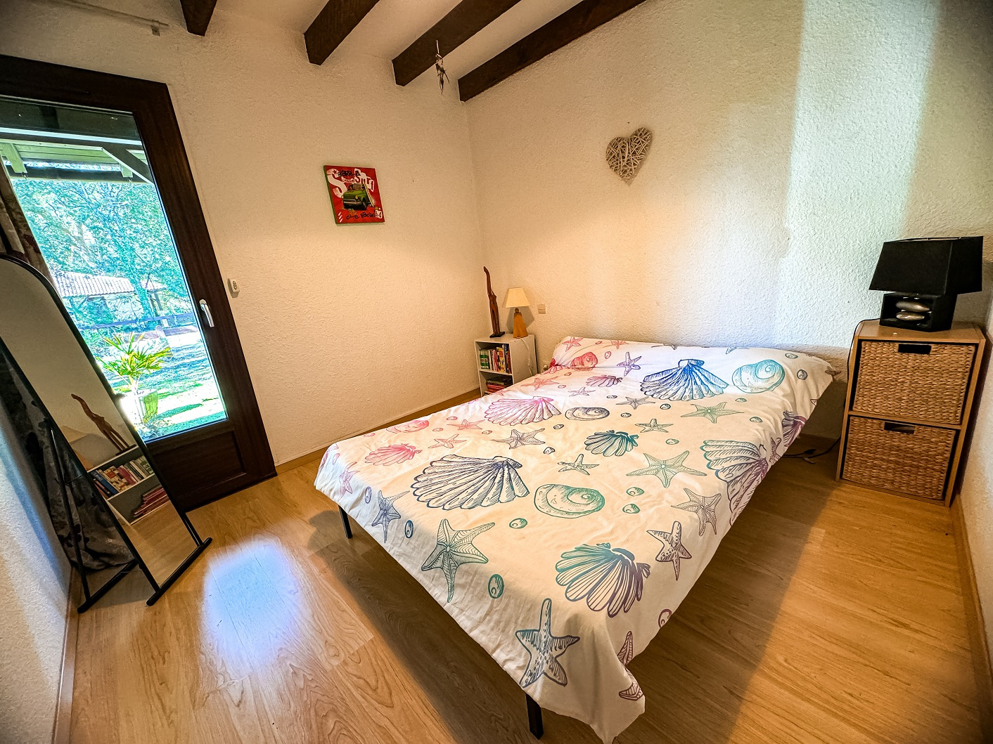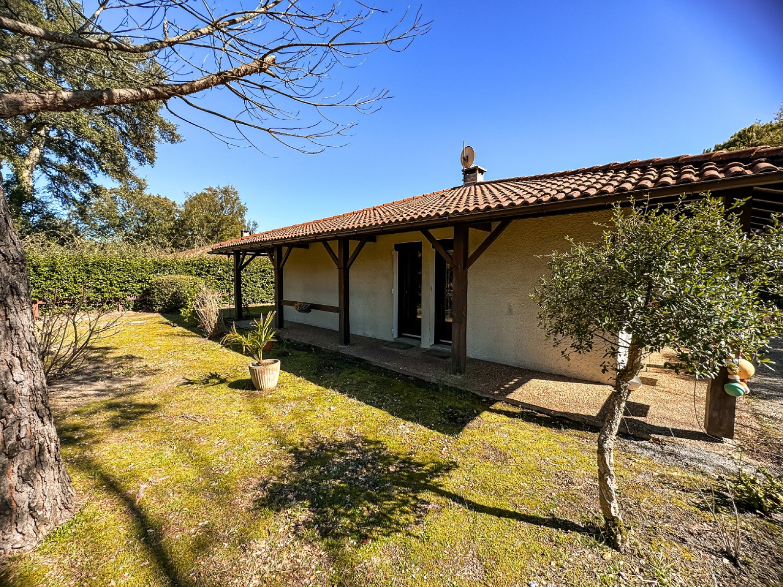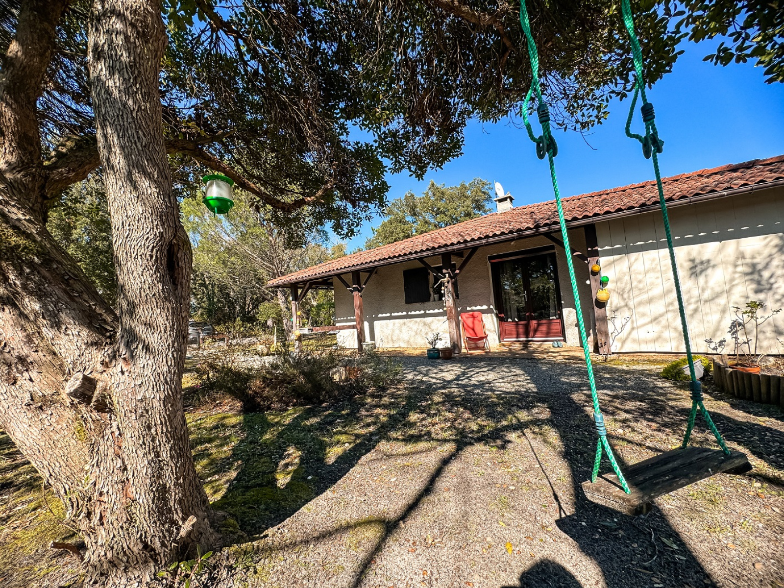 Pavillon landais offrant 3 chambres avec des lits doubles. A l'intérieur, une salle d’eau avec douche à l’italienne, WC séparés et pièce de vie avec cuisine équipée ouverte menant à une terrasse et au jardin.