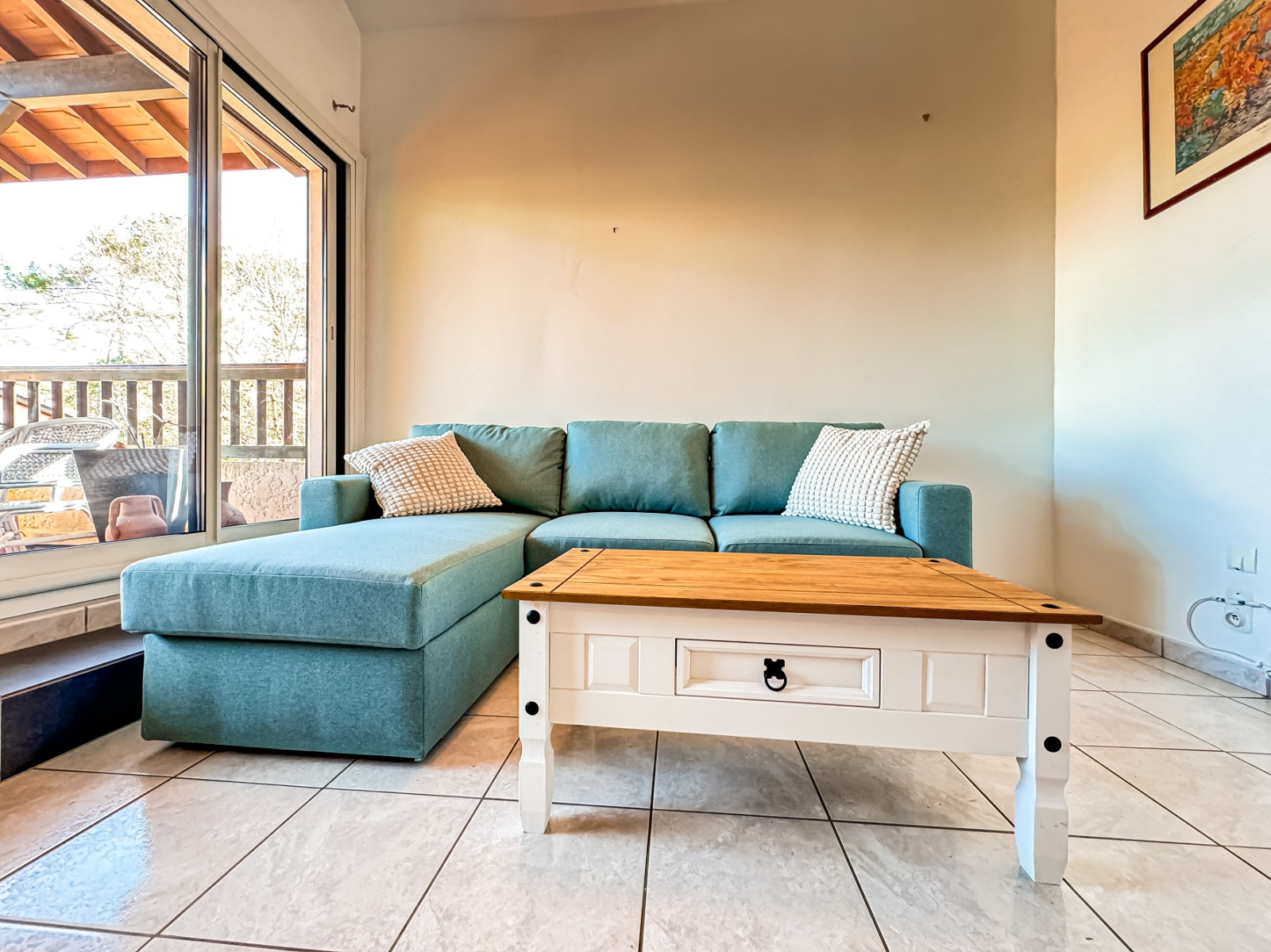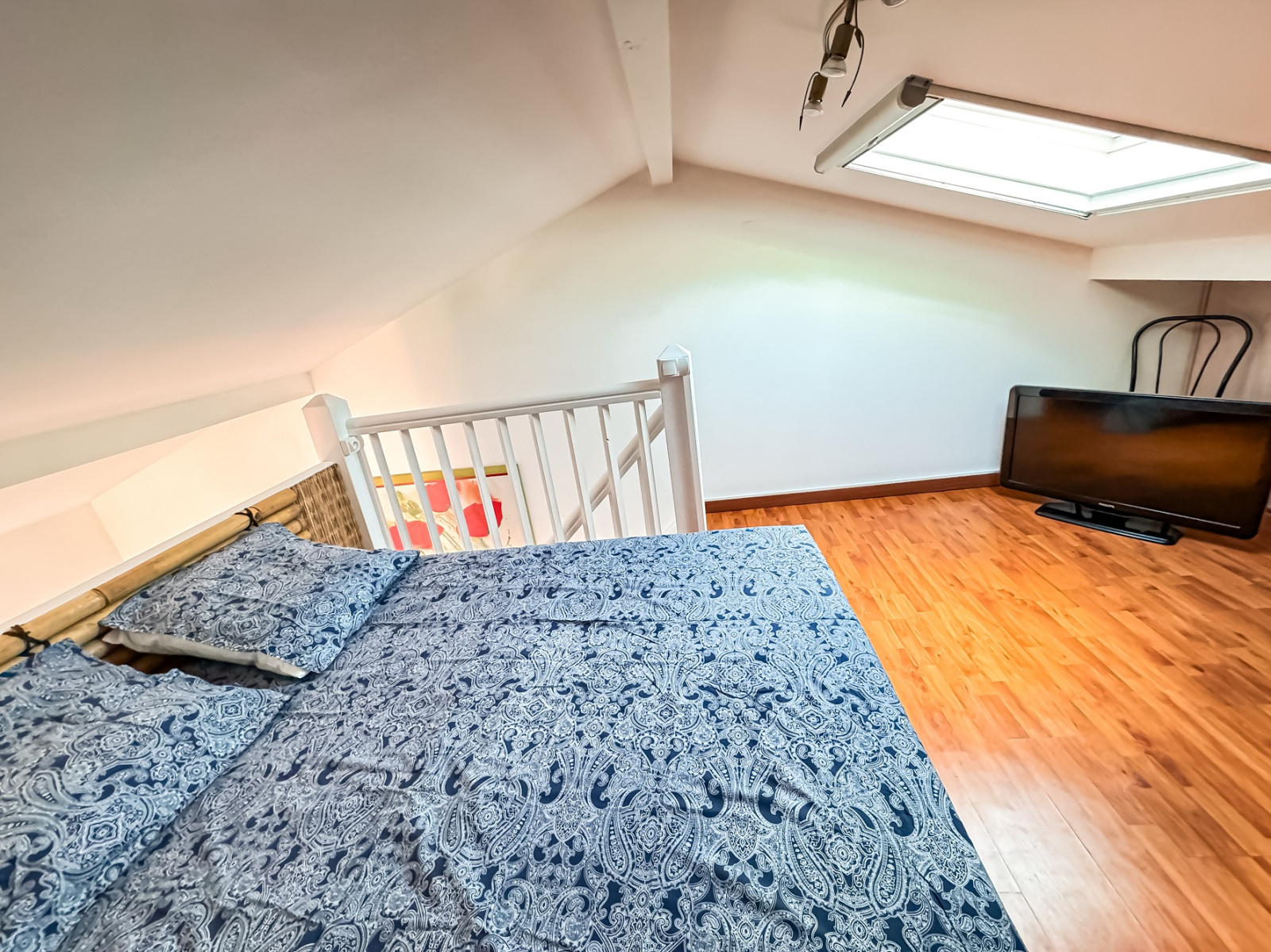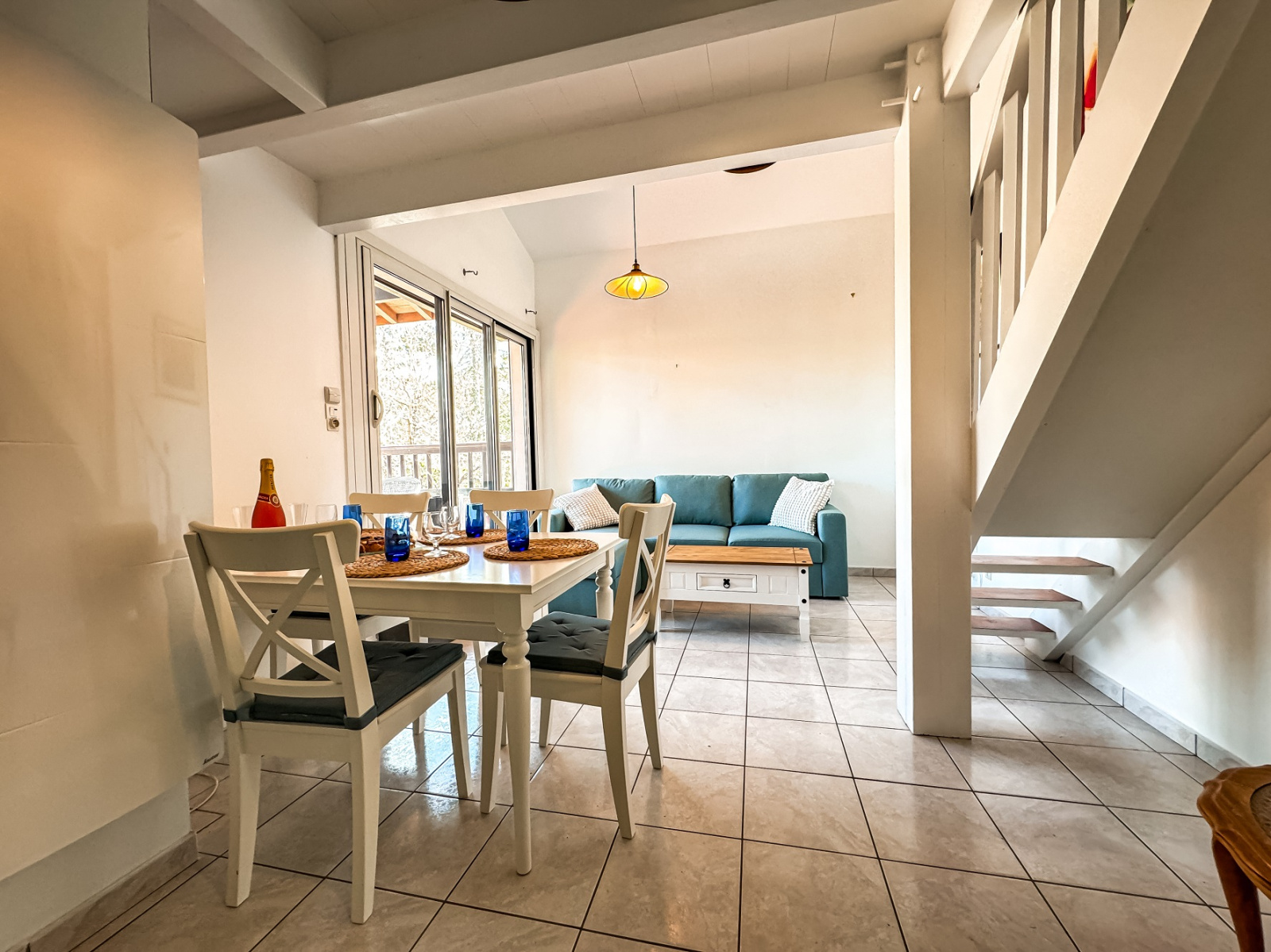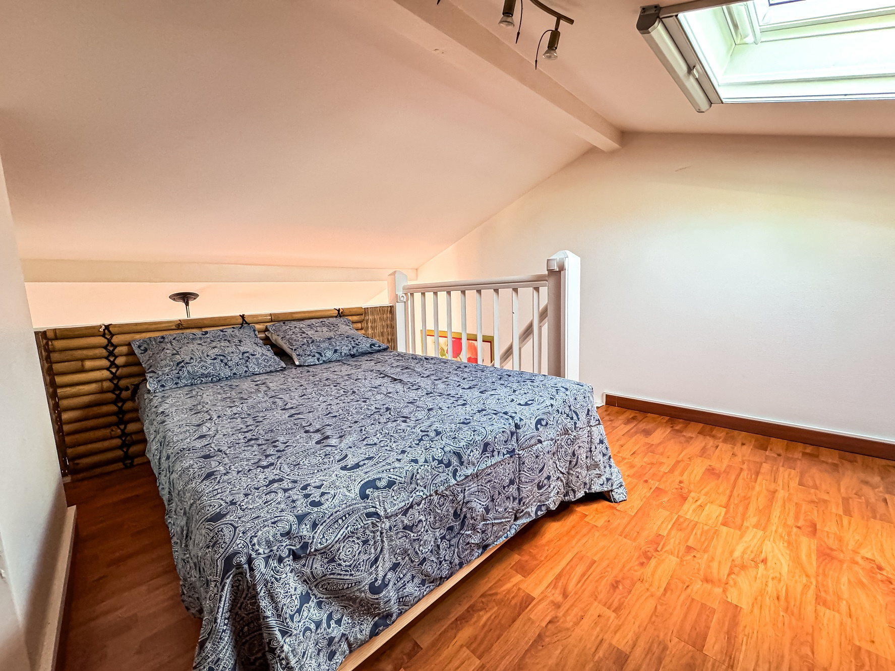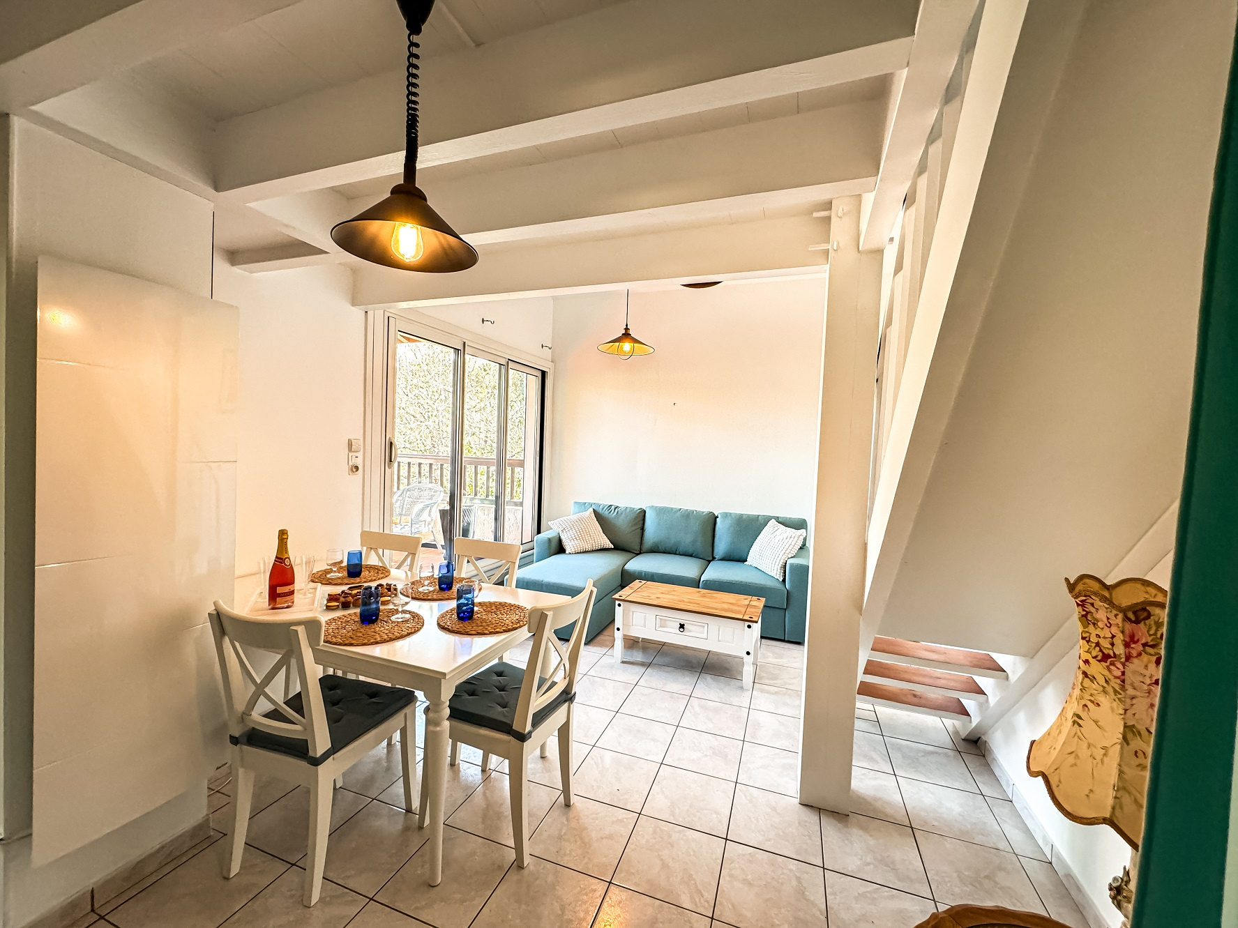 CONTIS PLAGE, résidence Hameau du Pont Rose. Appartement lumineux au 1er étage en très bon état composé d'une pièce de vie avec cuisine, un canapé convertible pour deux personnes, une salle d'eau et une mezzanine avec un lit double et une télé à l'étage.