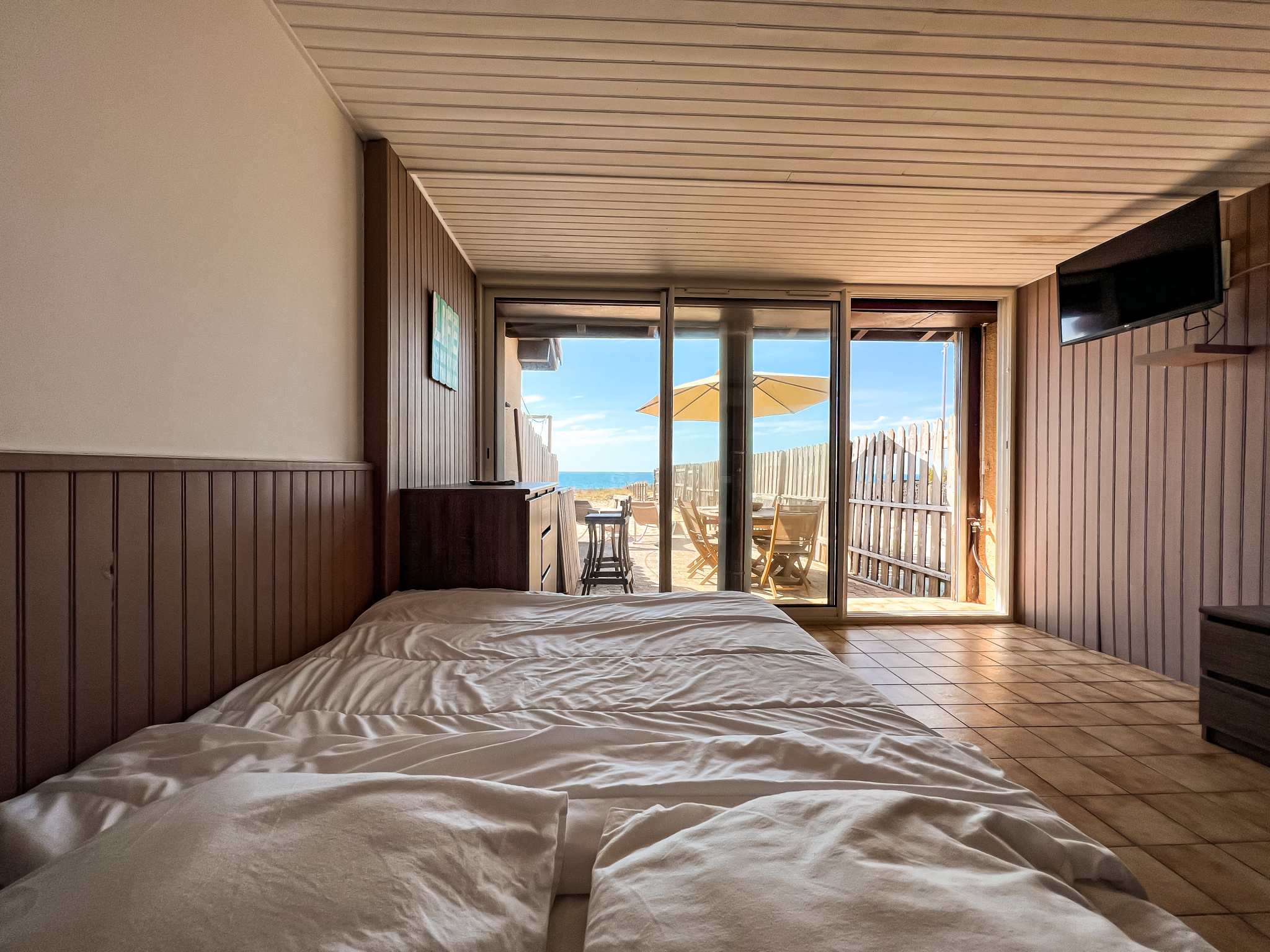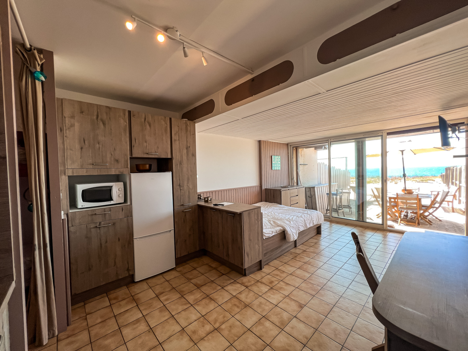 EXCEPTIONNEL - Emplacement idéal pour ce studio situé sur la dune de Contis face à l'Océan. Composé d'une entrée avec lit superposé, une pièce de vie lumineuse avec cuisine équipée, une salle d'eau et wc séparé. Terrasse Ouest avec vue sur l'Océan.