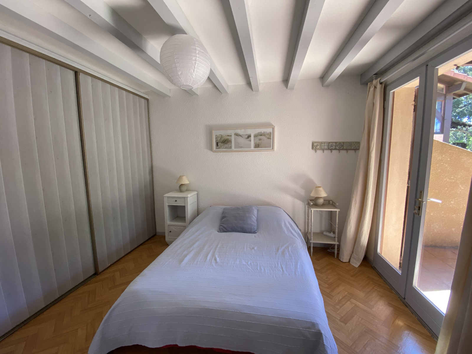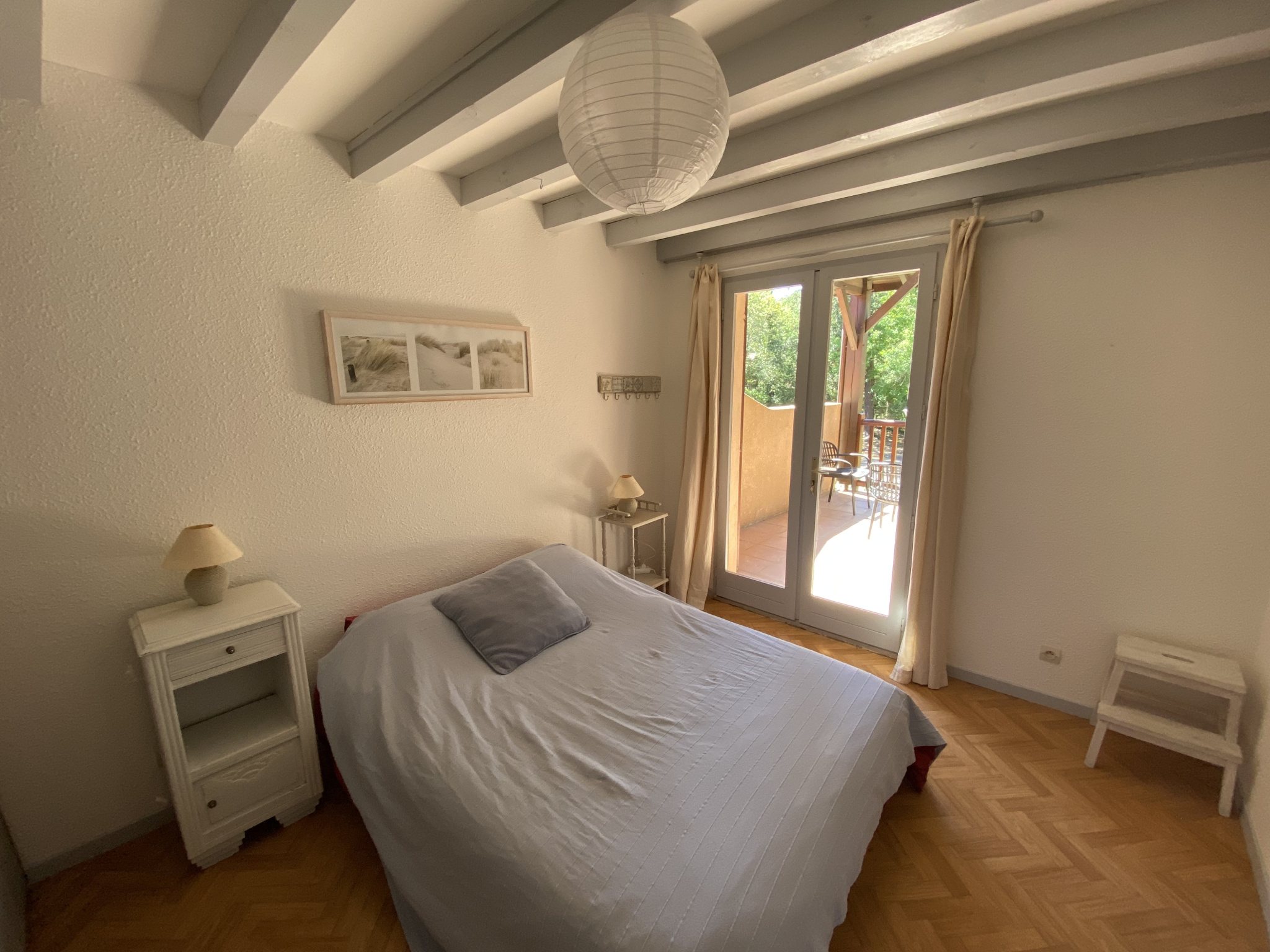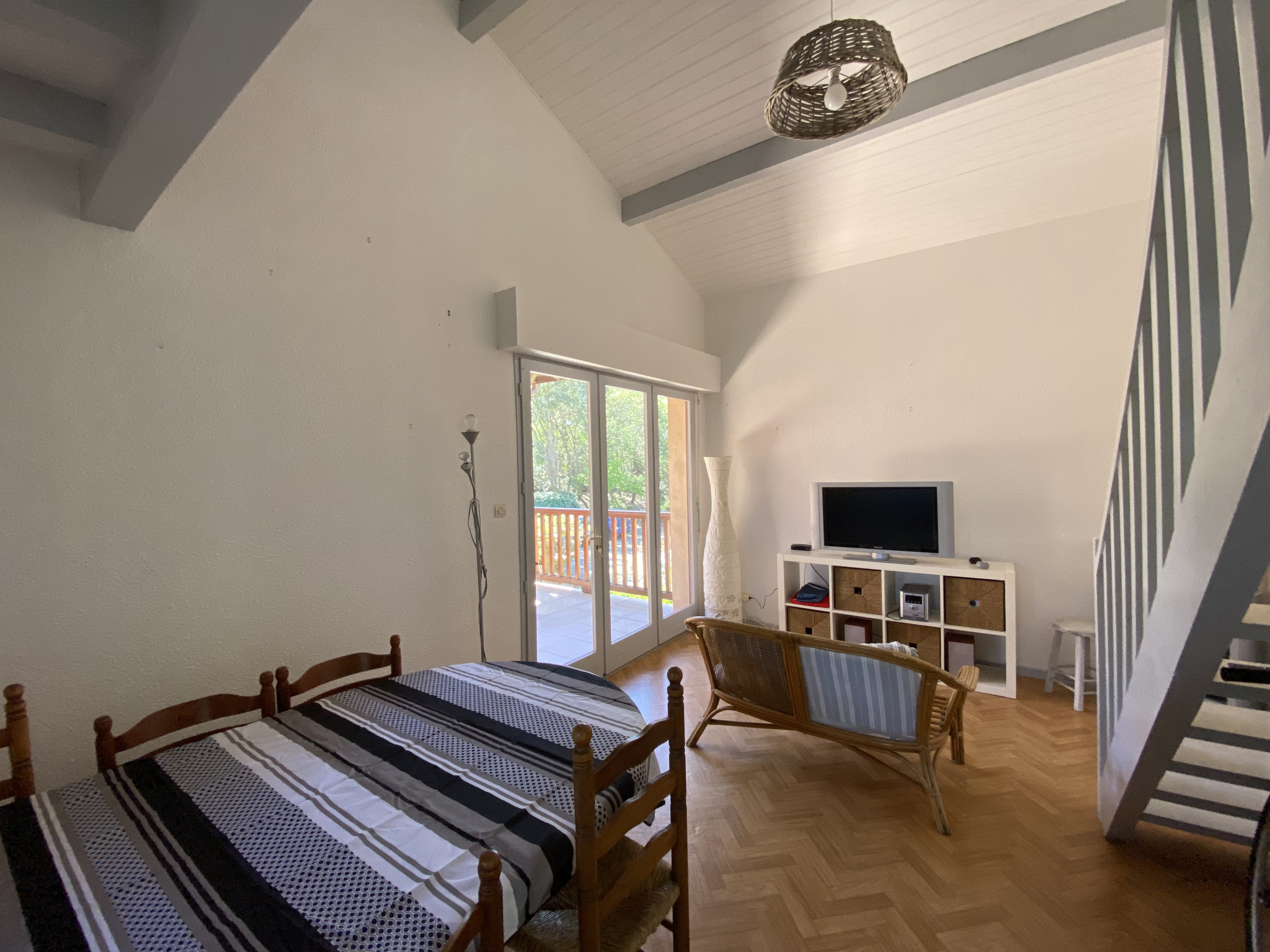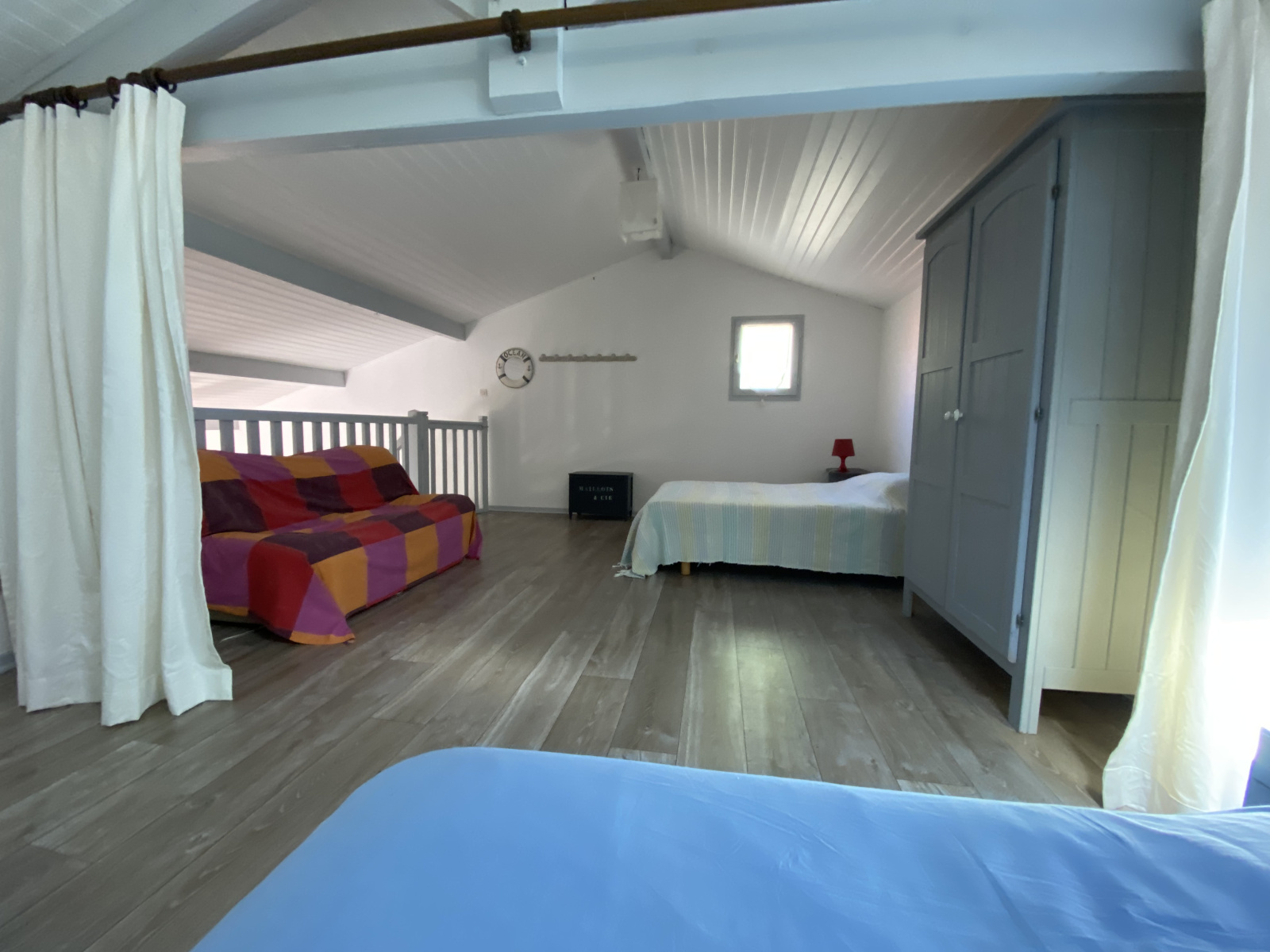 CONTIS PLAGE, résidence Hameau du Pont Rose. Appartement au premier étage en très bon état composé au rez-de chaussée d'une pièce de vie avec kitchenette, une chambre avec lit en 140, une salle d'eau et WC. A l'étage, une mezzanince avec deux lits en 140. Terrasse privative. Place de stationnement. Résidence avec tennis.