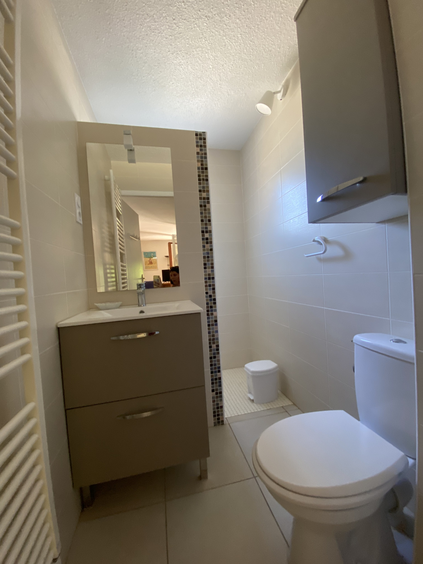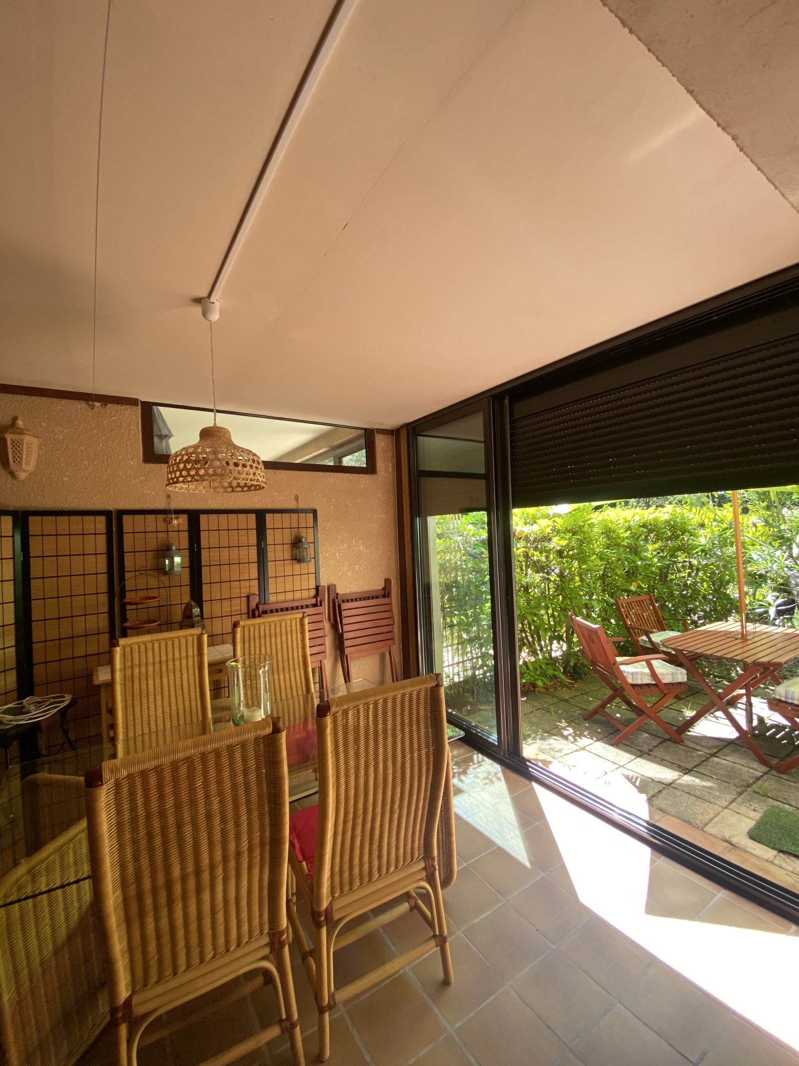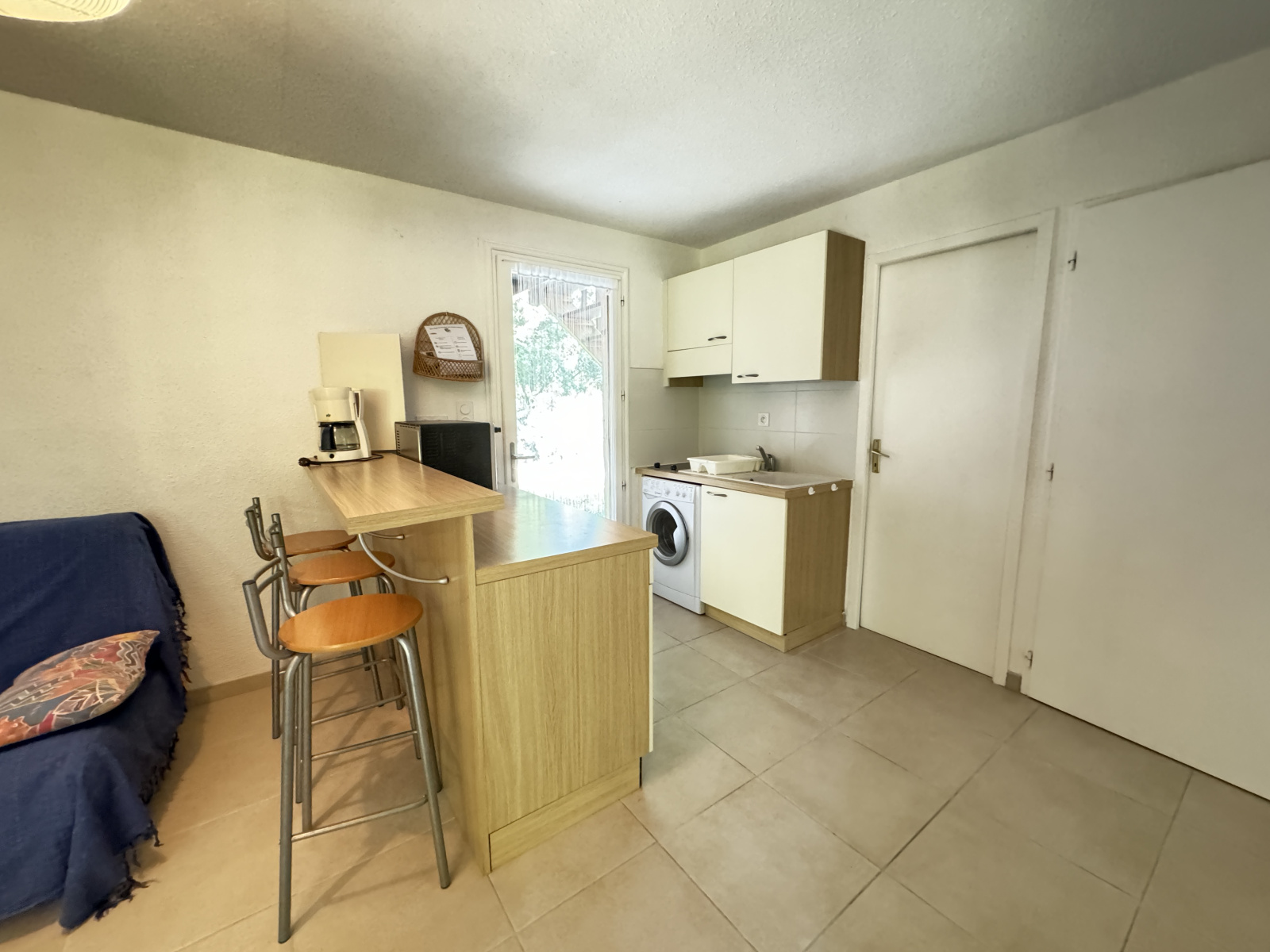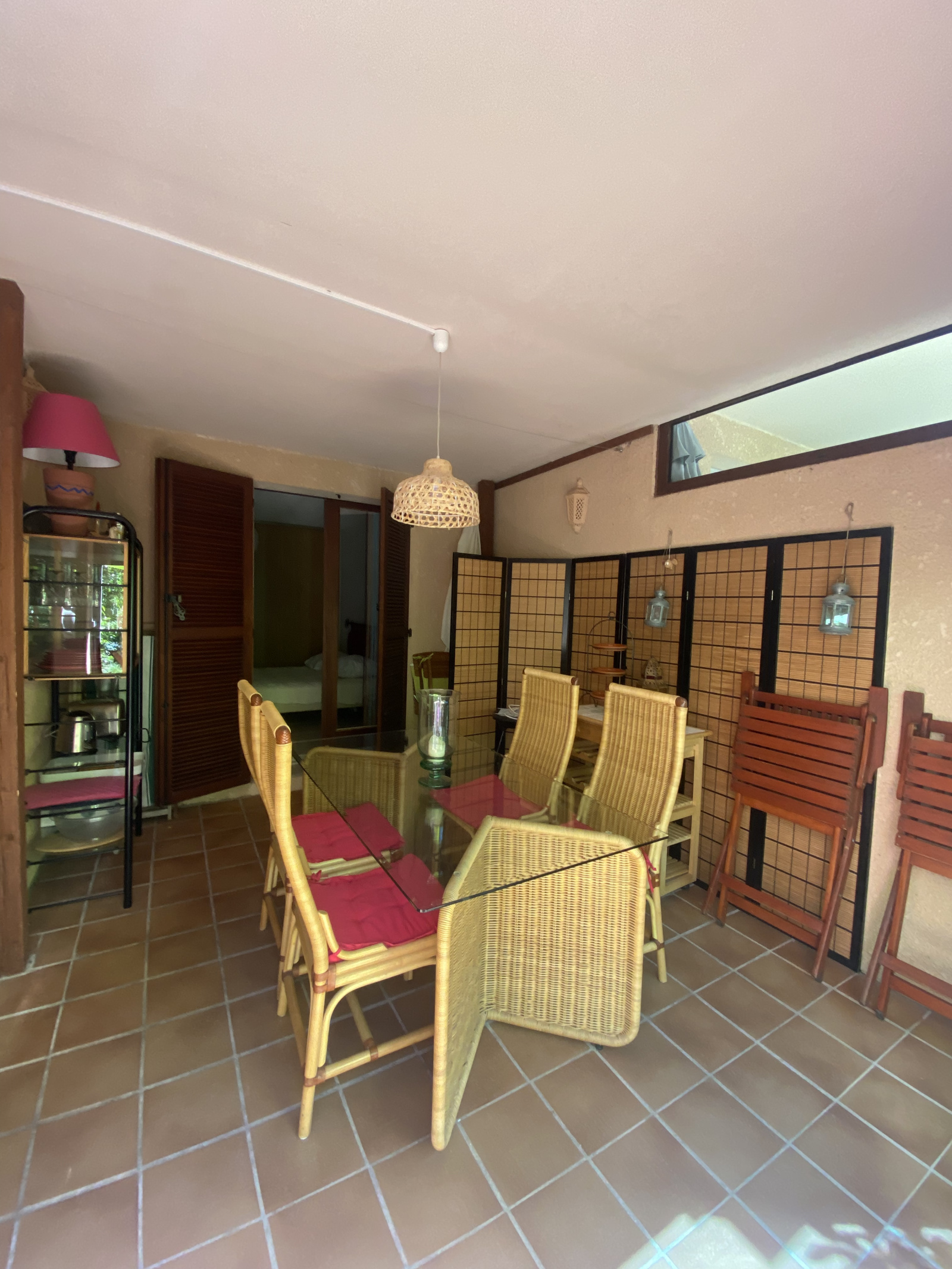 CONTIS PLAGE, résidence Hameau du Pont Rose. Appartement en très bon état composé d'une pièce de vie avec kitchenette, une véranda, une chambre avec lit en 160, une chambre avec lit superposé. Terrasse et jardinet privatif. Place de stationnement. Résidence avec tennis.