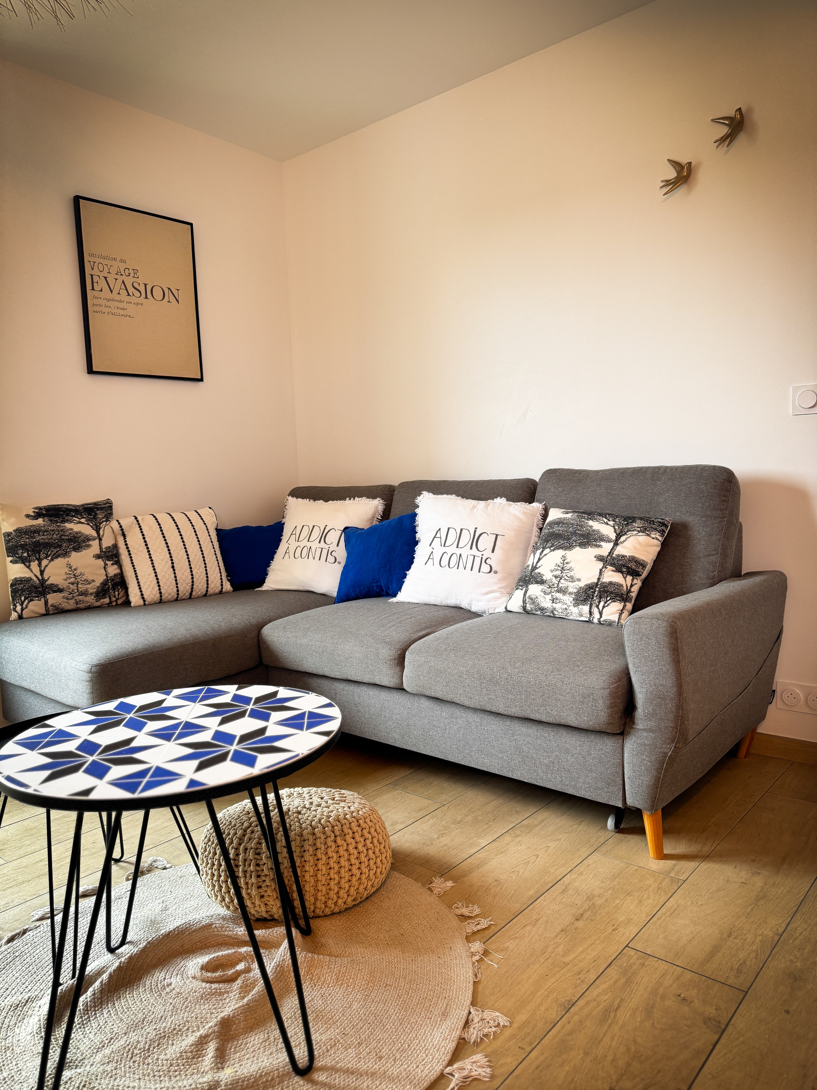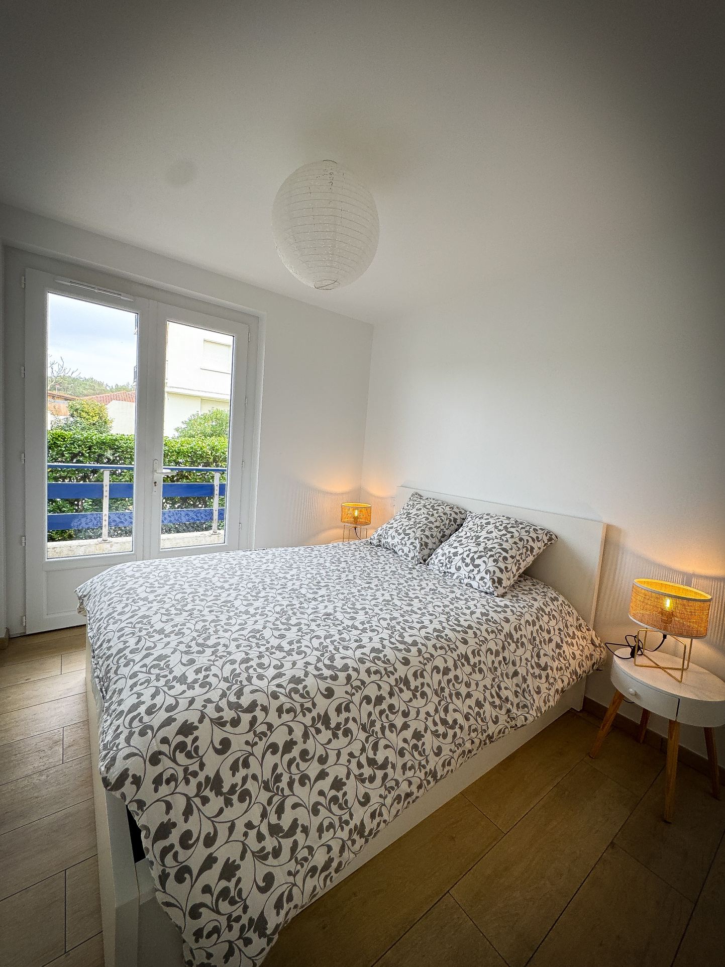 Au coeur du Contis plage à louer à la saison, bel appartement de Type 3 offrant 2 chambres avec deux lits doubles, salle d'eau, wc séparés et belle pièce de vie avec cuisine ouverte donnant sur un balcon.