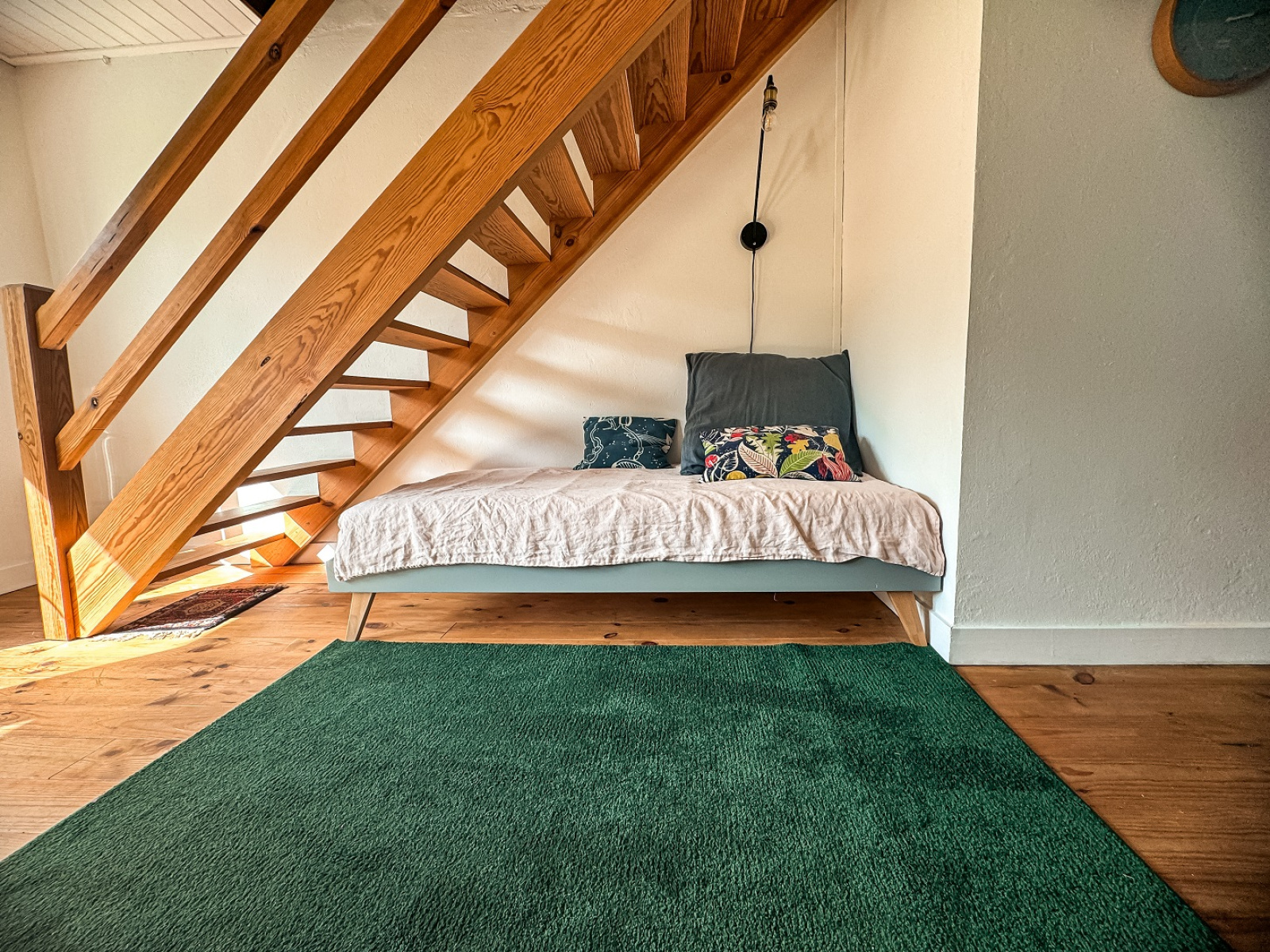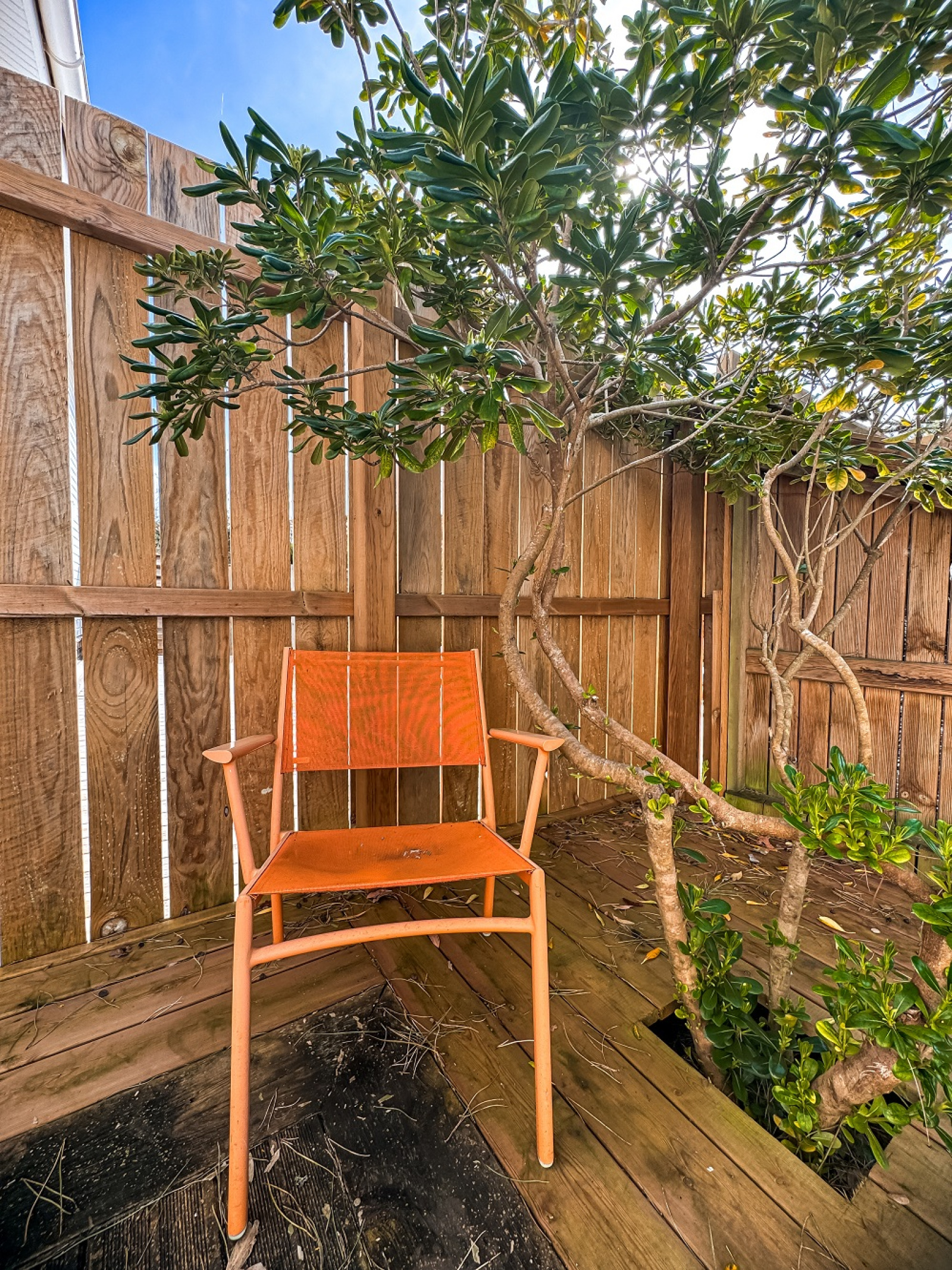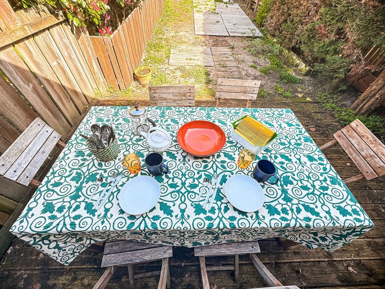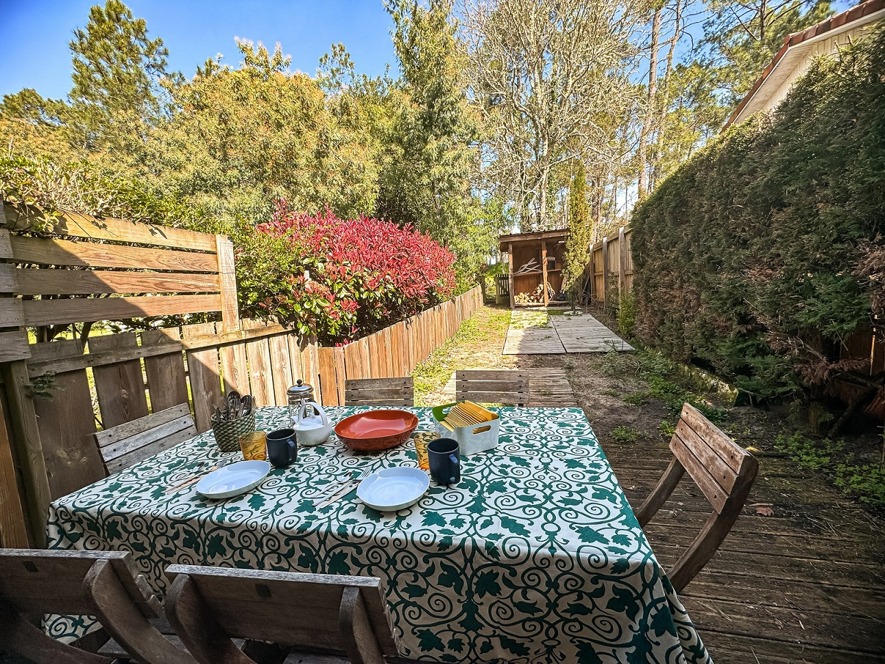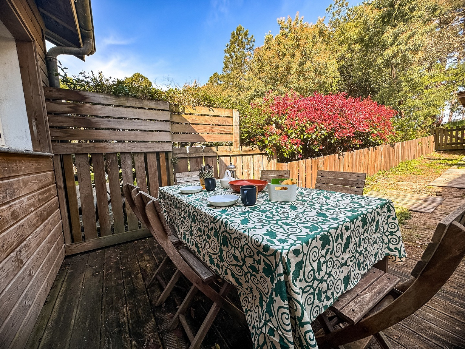 A l'avant de la maison, un coin terrasse très lumineux, l'idéal pour le café du matin.