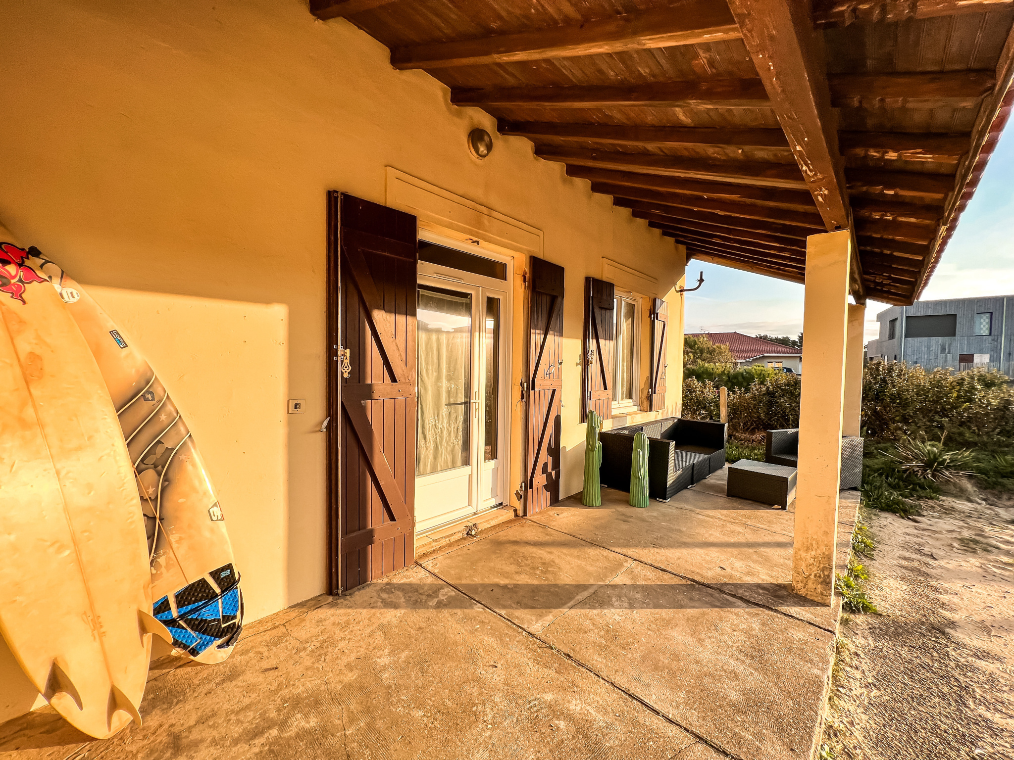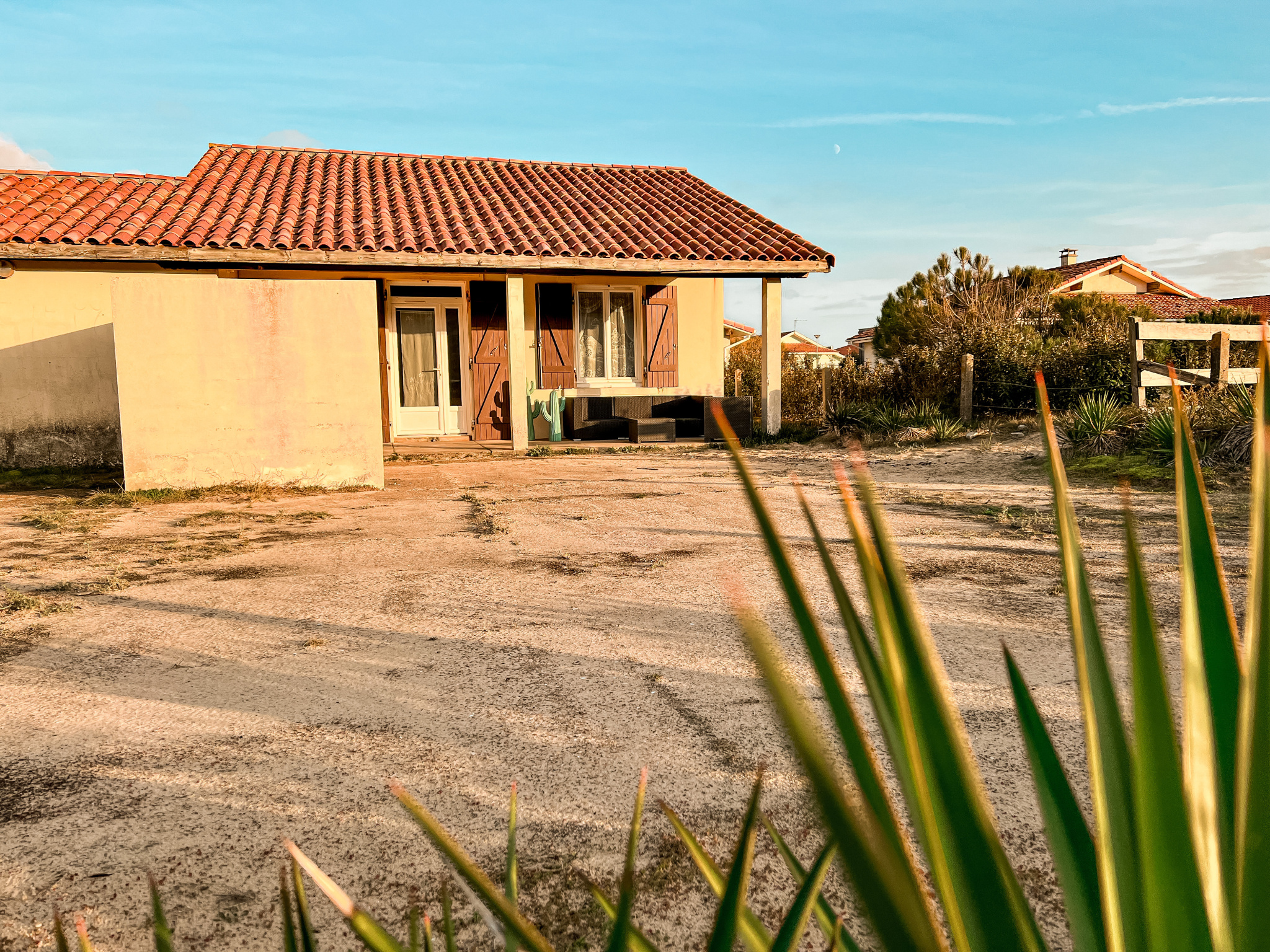 CONTIS PLAGE - Maison individuelle de plain pied composée d'une entrée, une pièce de vie principale, une cuisine équipée, une chambre avec lit en 140 et une seconde chambre avec 2 lits de 90 et un lit d'appoint en 90, salle d'eau avec wc. Garage attenant. Terrasses et jardin privatif.