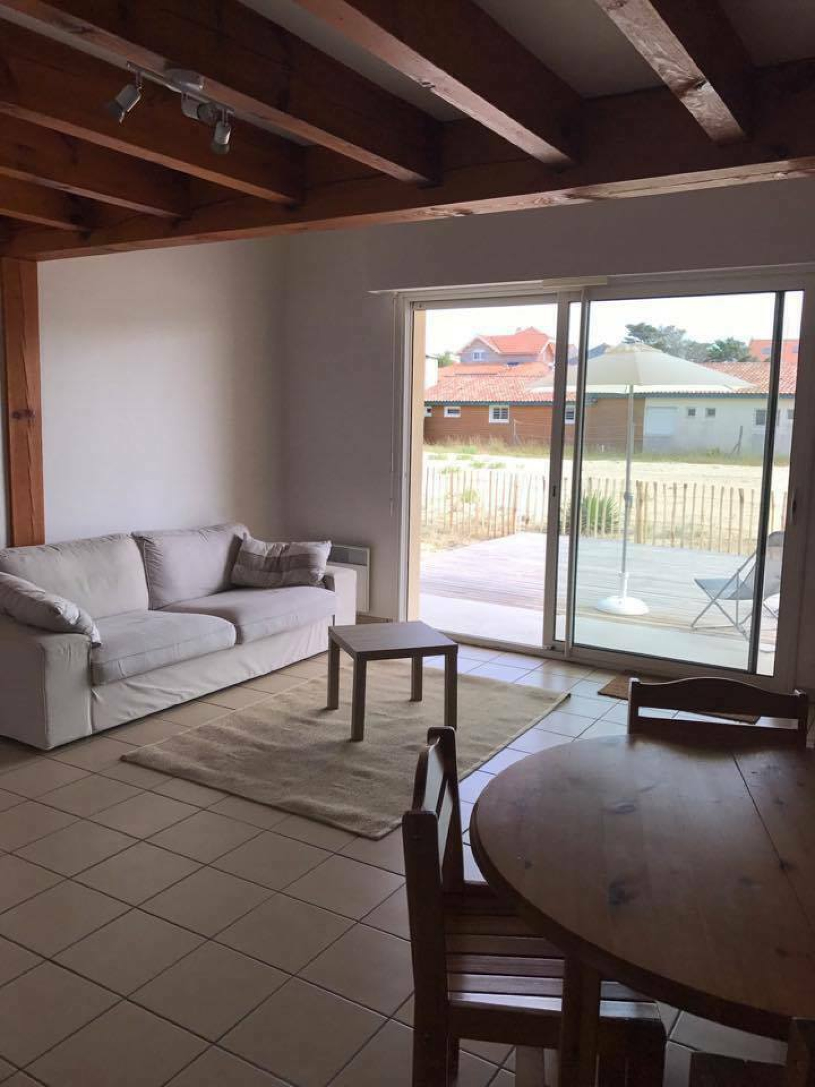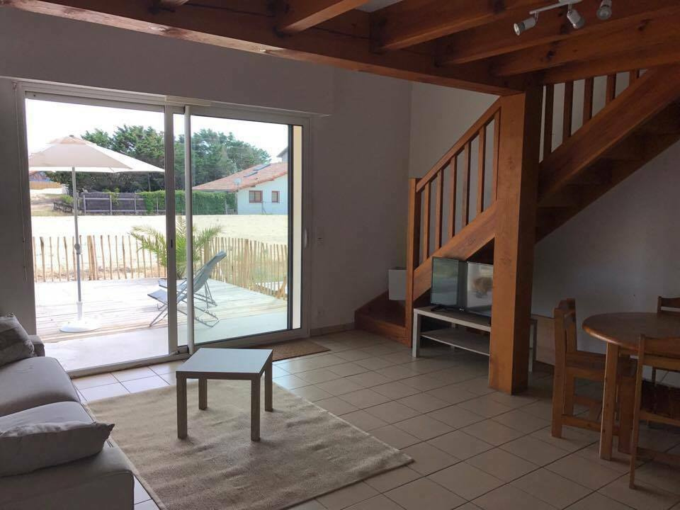 Contis Plage - Découvrez cette agréable et coquette maison mitoyenne avec terrasse à deux pas de la plage surveillée. Elle se compose en rdc d'une entrée, une pièce de vie lumineuse avec cuisine équipée donnant sur terrasse bois, une chambre avec 2 lits de 90, une salle d'eau et wc séparés.