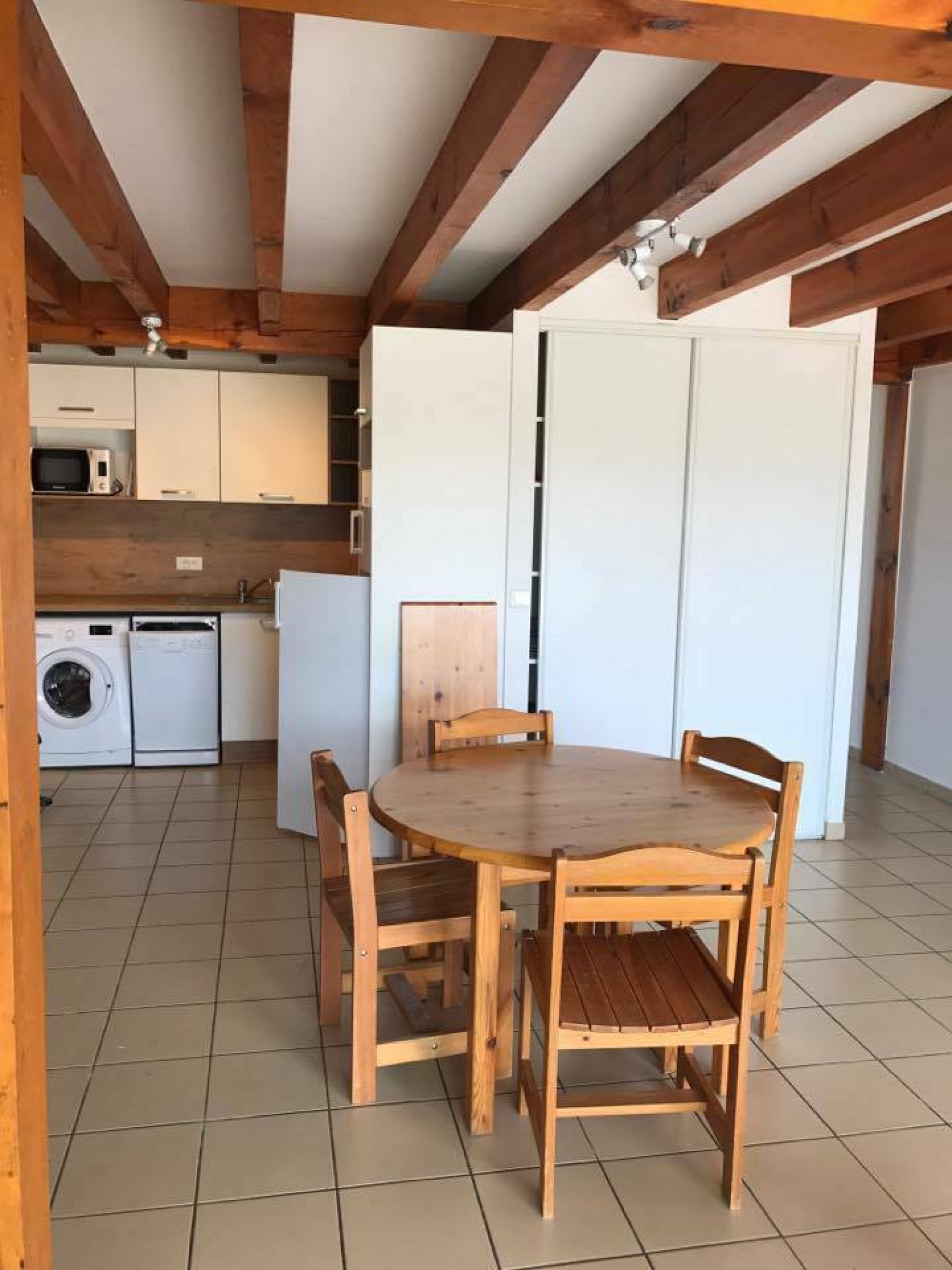A l'étage une mezzanine, une chambre avec lit double et dressing. Place de stationnement. Idéal vacances sans voiture.