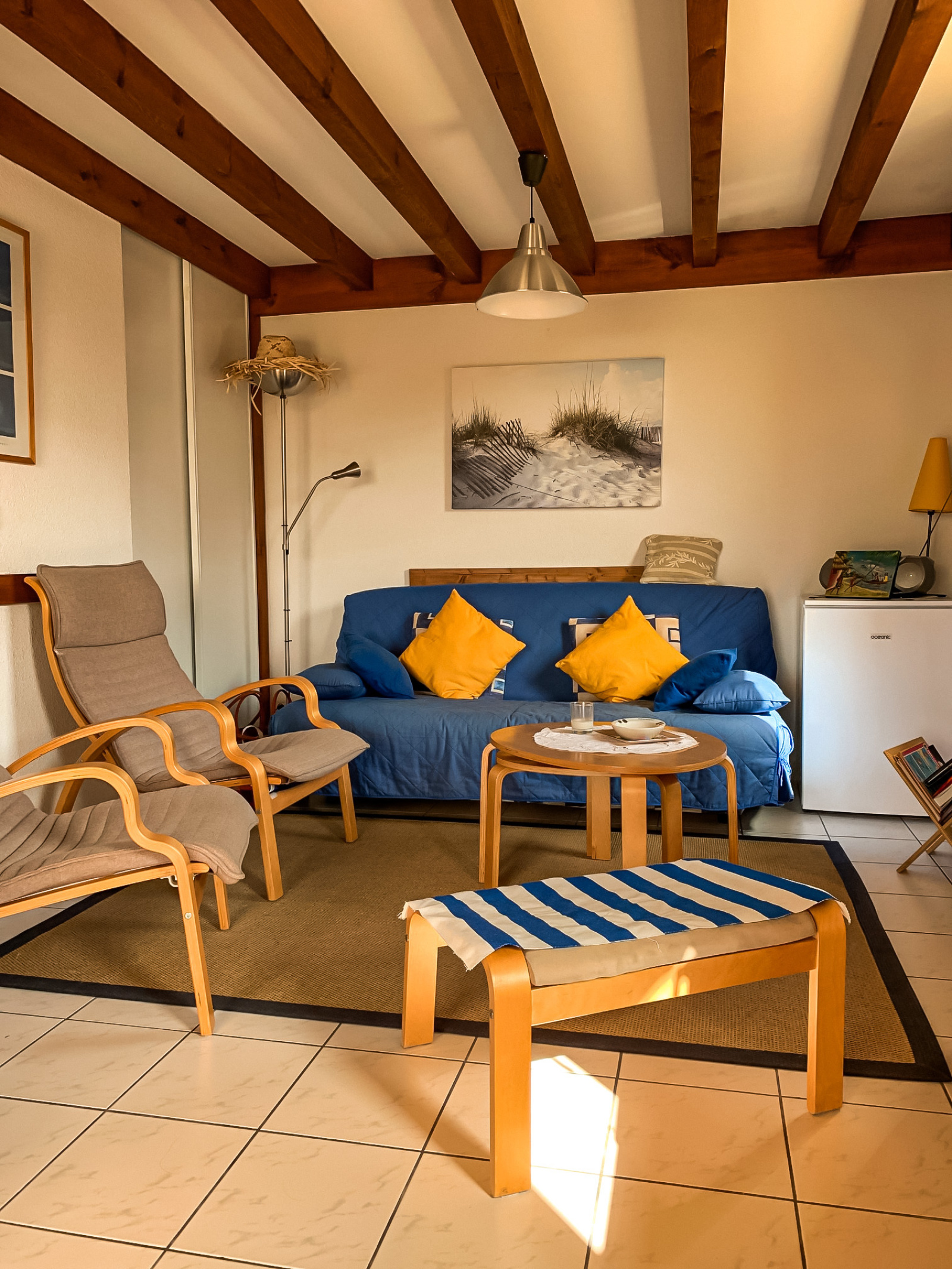 Capacité 6 couchages : 1 chambre lit double, une mezzanine lit double et 1 canapé convertible