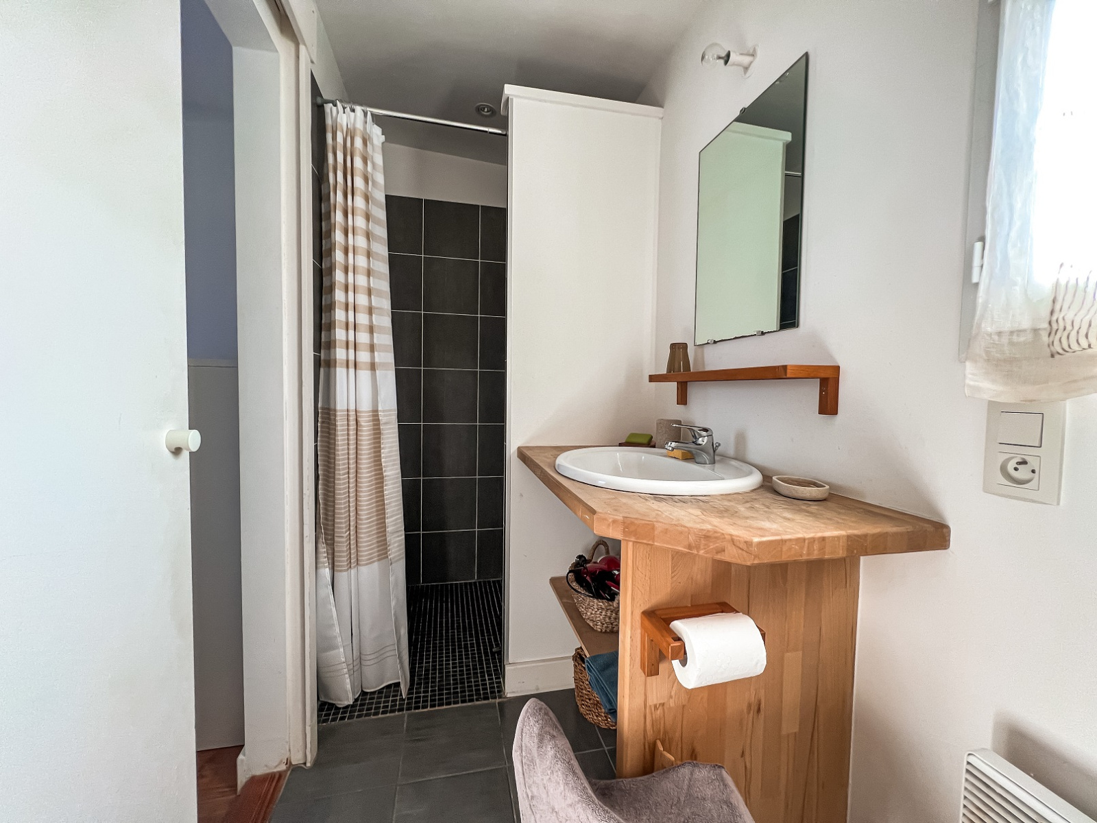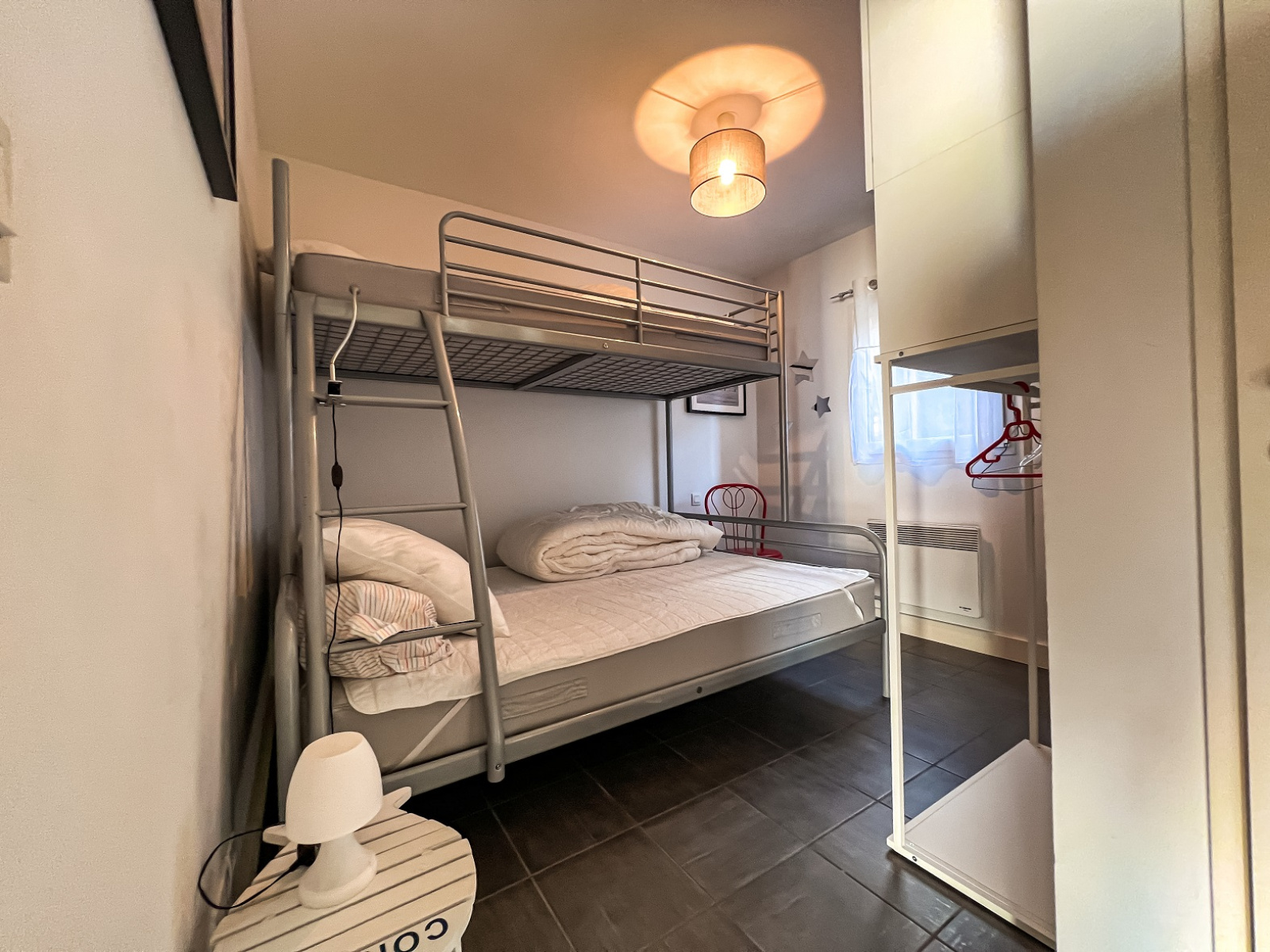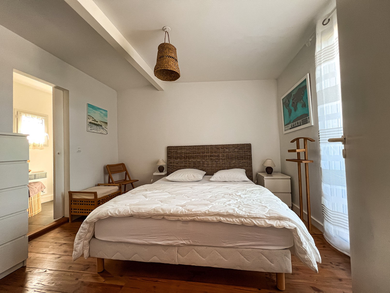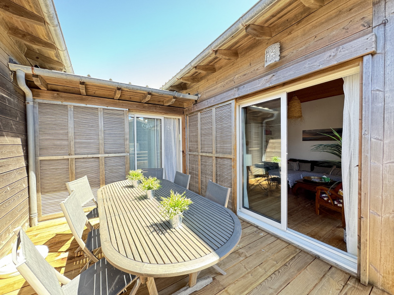Maison composée en rez-de-chaussée d'une entrée, deux chambres, une salle d'eau et wc indépendant. A l'étage une belle pièce de vie lumineuse avec cuisine entierement équipée us, et une suite parentale (lit 160) avec salle d'eau et wc. 2 grandes terrasses.