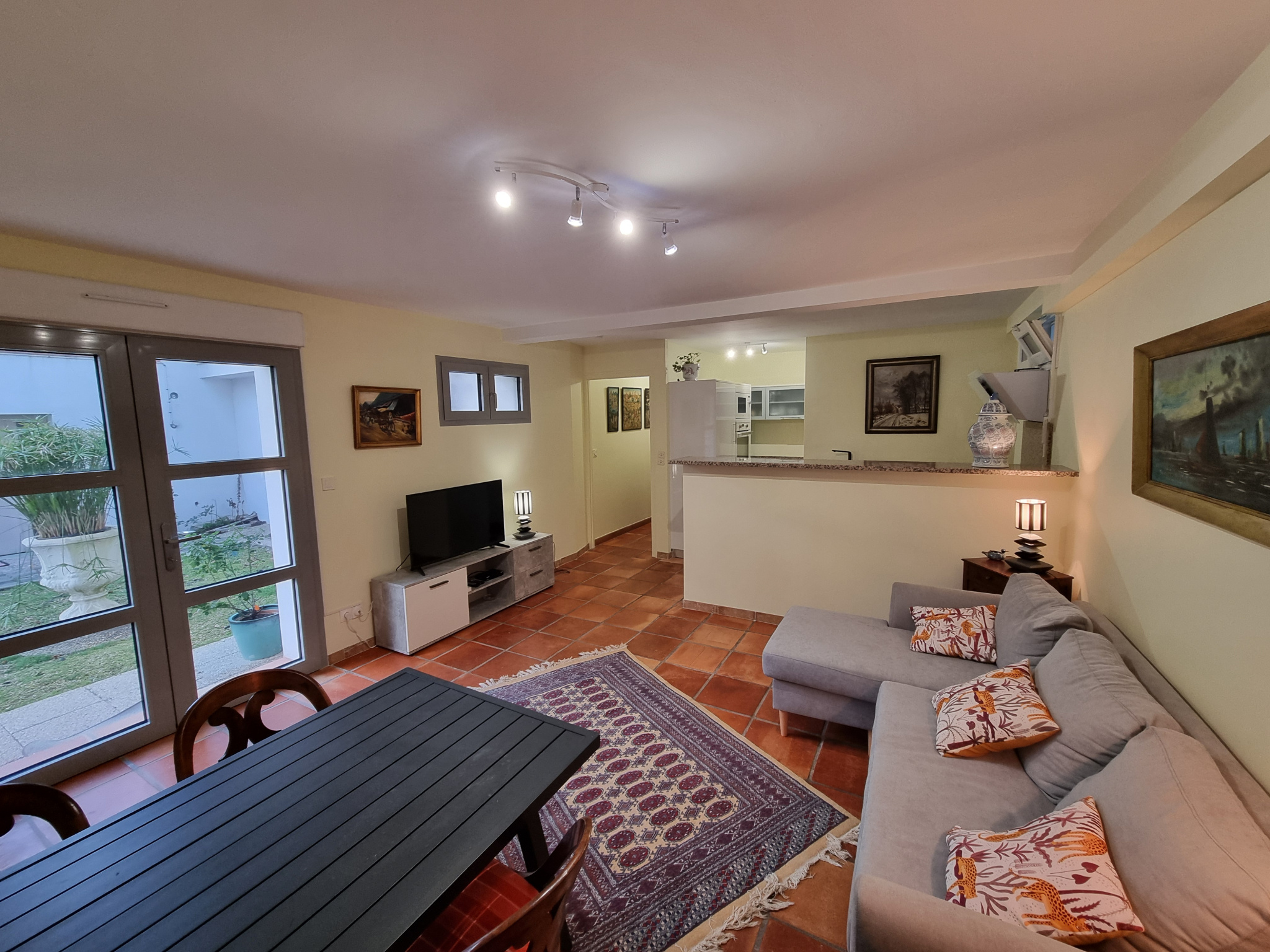 Emplacement idéal pour ce logment parfaitement équipée situé au RDC d'une villa dans le secteur prisé des Pelindres Sud, à quelques minutes de la plage sauvage à pied. Il se composed'une cuisine ouverte sur le sejour, une chambre, salle d'eau et wc séparés. Au pied de la piste cyclable et sentier pour accéder à la plage. Capacité 2 couchages. (1 lit double) grande terrasse au calme.