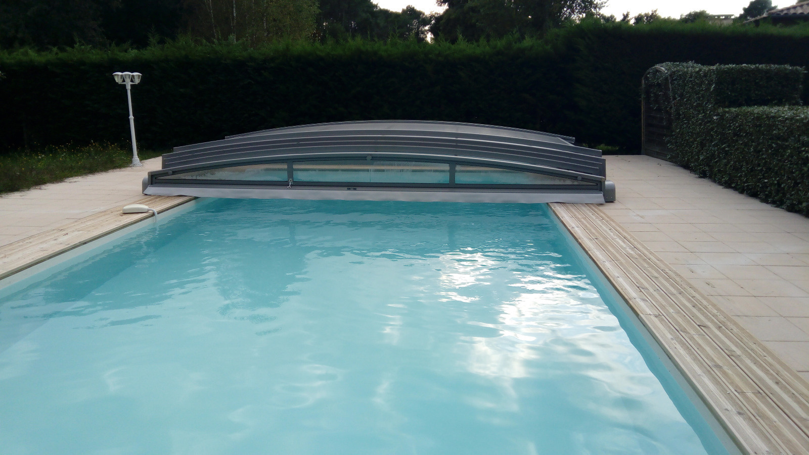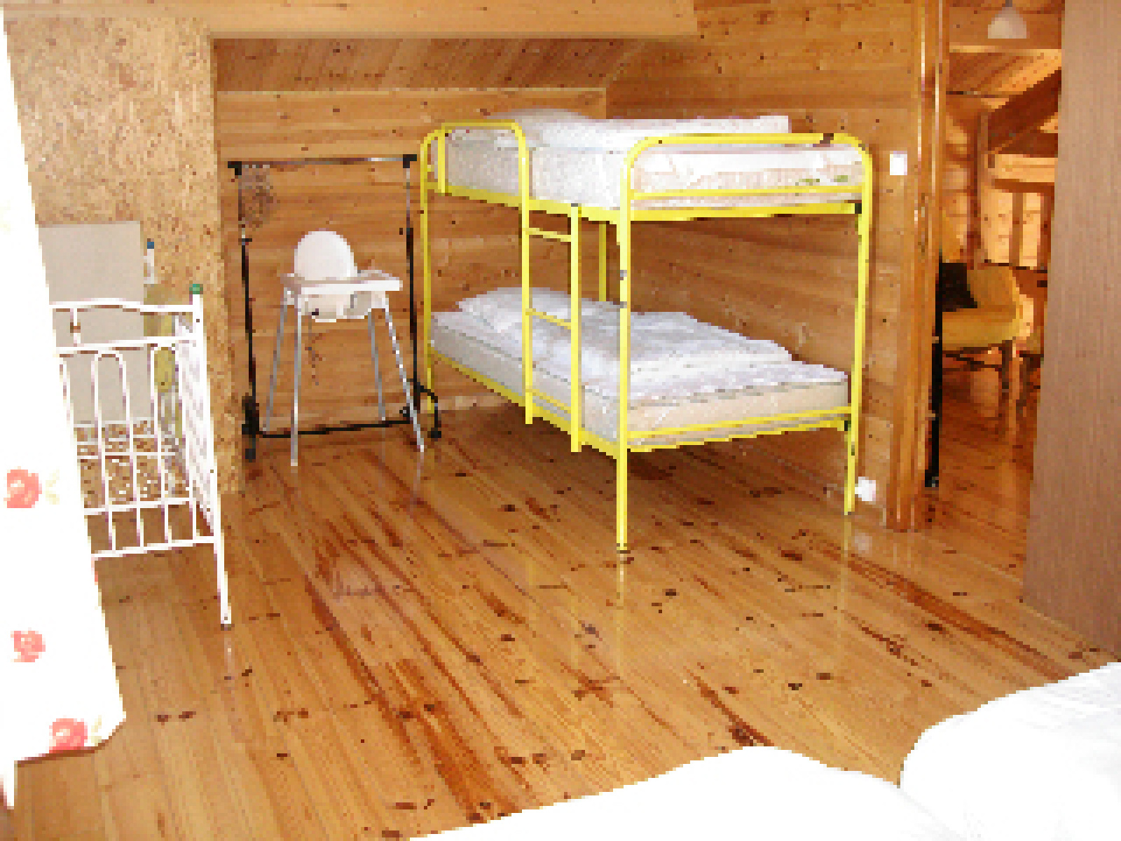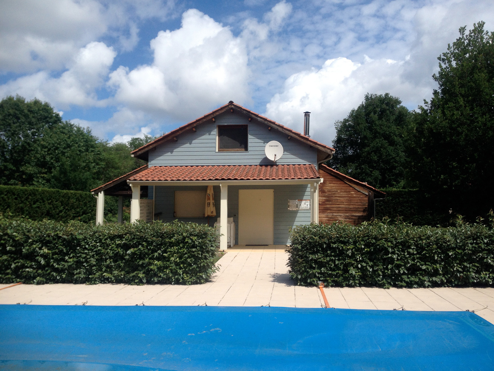 MEZOS - Maison bois avec piscine sécurisée composée d'une pièce de vie avec cuisine us équipée, chambre avec lit en 160, salle d'eau et wc indépendant. A l'étage mezzanine, chambre avec 2 lits de 90 et lit superposé + lit bébé. Terrasse couverte. Abri voiture. Jardin privatif. 2 vélos sont à disposition.