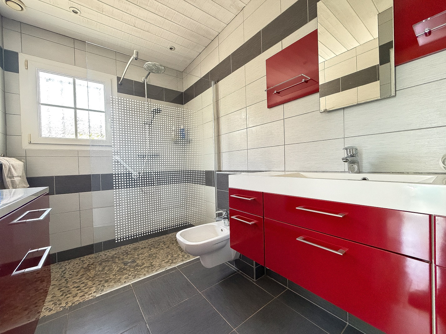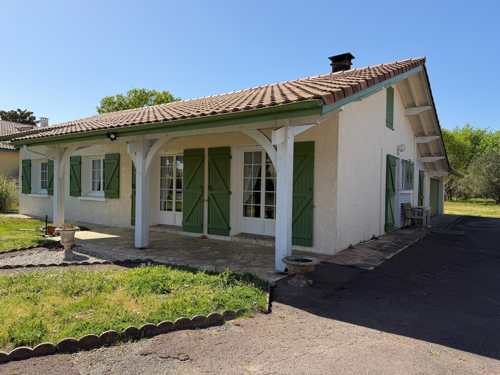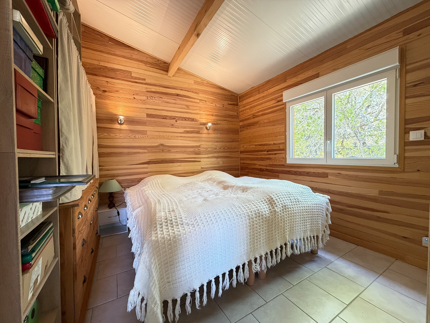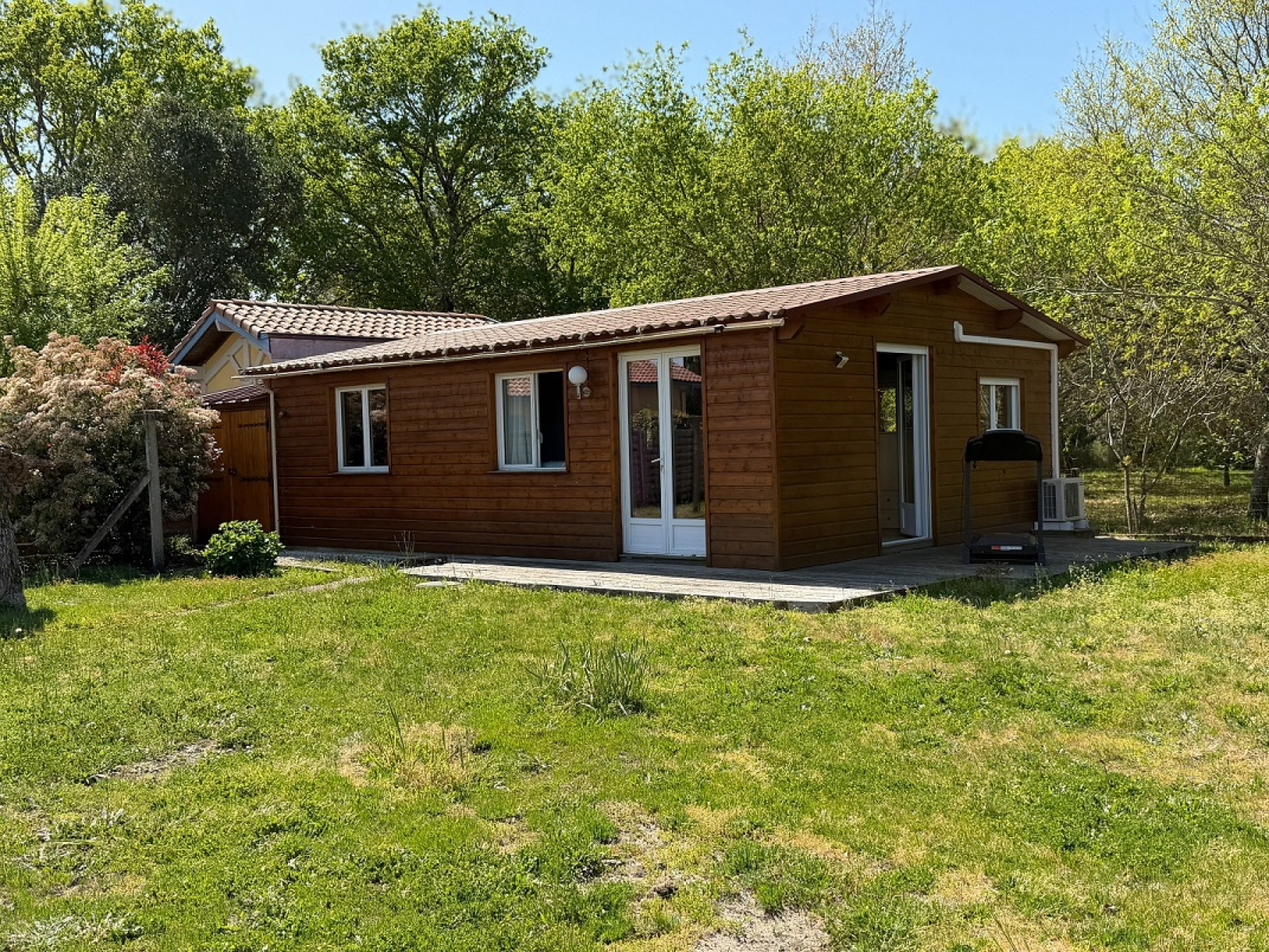 À l’extérieur, la propriété révèle un véritable atout : un chalet en bois indépendant, aménagé avec soin, comprenant un séjour avec kitchenette, deux chambres et une salle d’eau. Un espace idéal pour recevoir famille et amis en toute intimité ou envisager un projet d’accueil.
