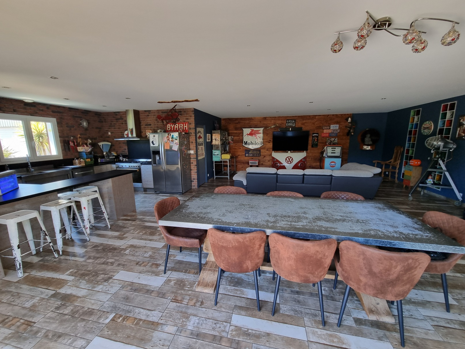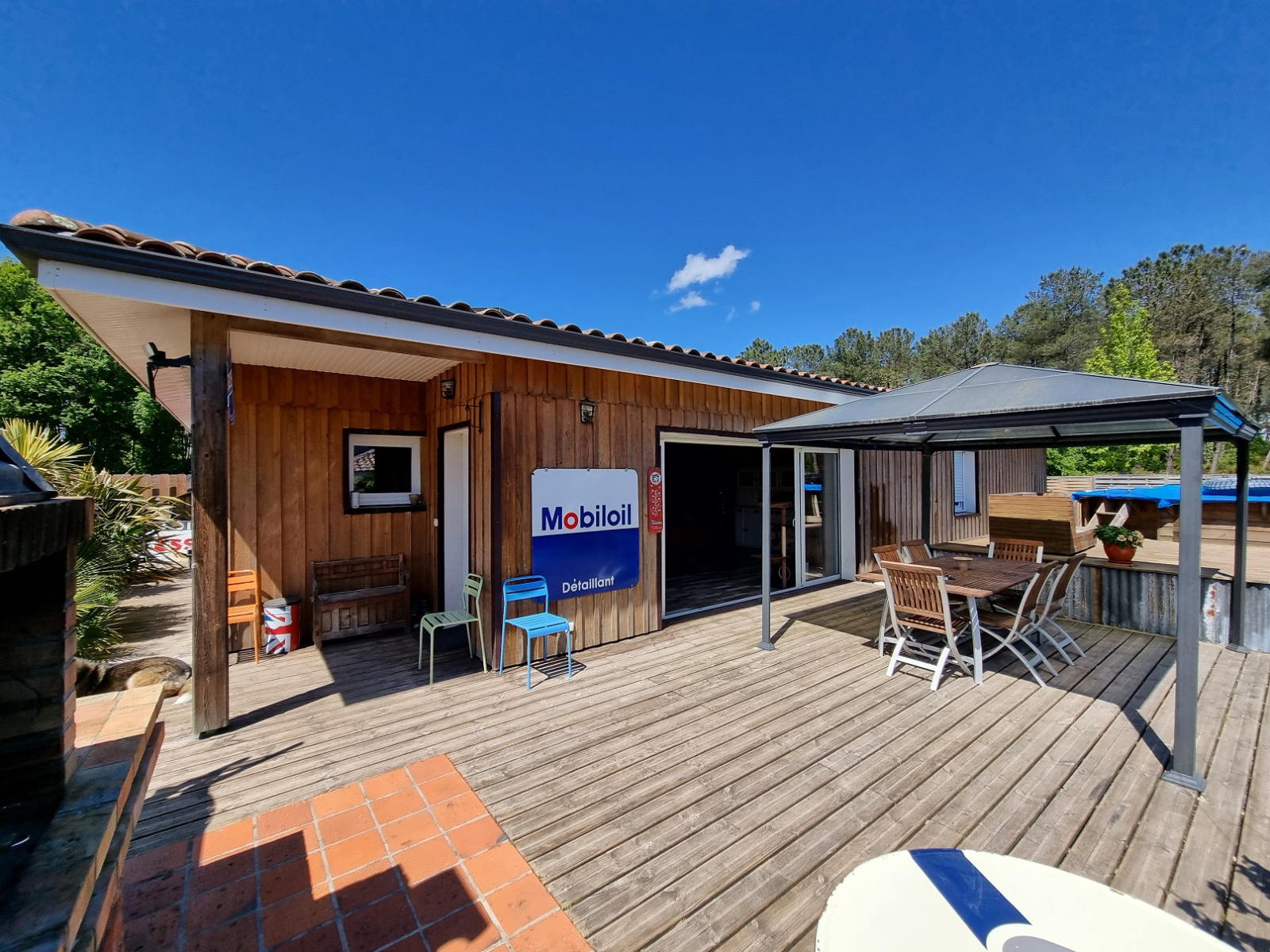 A vendre sur la commune de Saint Julien en born à 3 kms de contis plage maison très agréable avec une pièce de vie spacieuse et lumineuse avec une grande baie à galandage pour profiter de la terrasse avec sa piscine hors sol et le coin barbecue. Trois chambres et un grand dressing qui peut être transformé en chambre si besoin. Salle de bains avec douche, baignoire et un meuble double vasque. Un cellier et un WC séparé. En mitoyenneté un hangar d'environ 290 m² avec bureau et vestiaire occupé actuellement en garage automobile avec un bail commercial jusqu'en 2031 pour une rentabilité locative de 1800 euros hors taxe. Ne tardez plus à nous appeler pour organiser une visite, vos agences b2s immobilier de lit et mixe et Saint Julien en born sont à votre service.