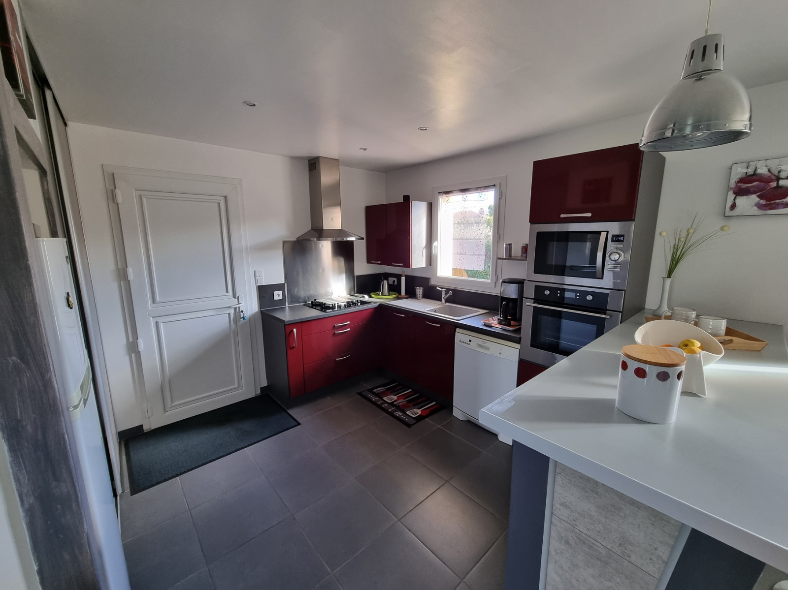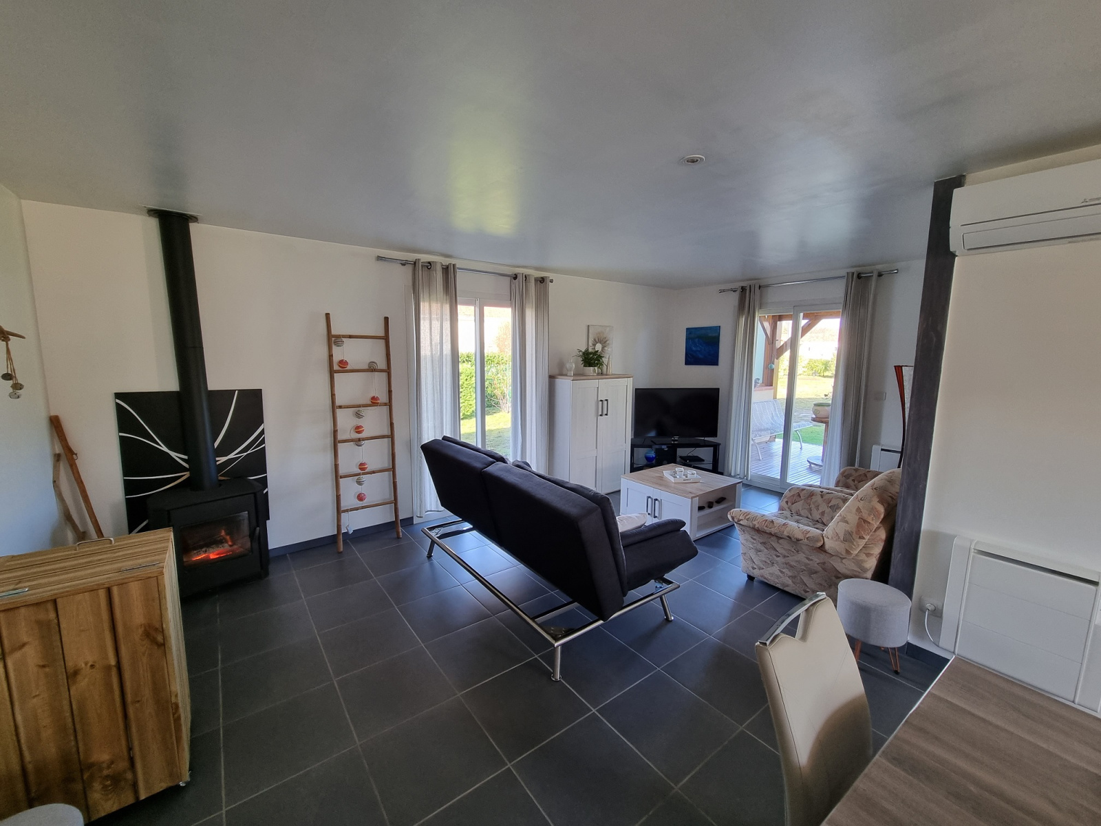 Laissez-vous séduire par cette maison parfaitement bien entretenue tout confort comprenant une cuisine ouverte sur le salon/séjour avec son poële à bois, trois chambres dont une avec salle d'eau attenante, un bureau dressing mais qui peut très bien faire une quarième chambre si besoin, une salle d'eau avec une douche, une vasque, un WC séparé et un cellier. A l'extérieur une grande terrasse couverte, un garage et trois petit abris, un jardin entièrement clos avec un portail électrique de 1190 m² fait de ce bien un véritable havre de paix tout proche de la piste cyclable.