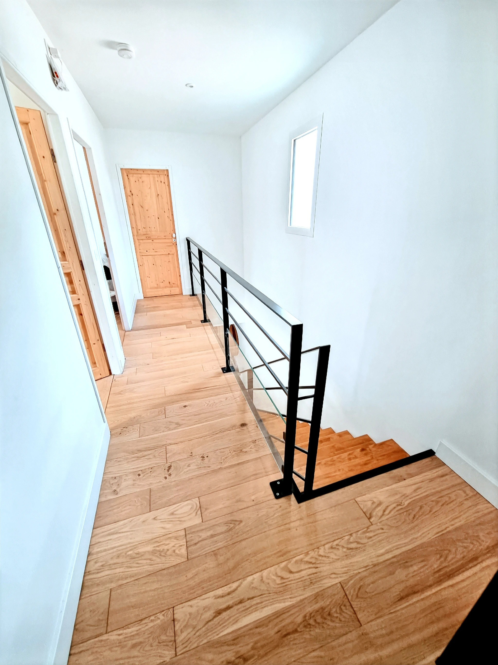 À l’étage : deux chambres avec balcon, dont une avec dressing, une salle d’eau moderne avec douche à l’italienne, vasque, WC séparé