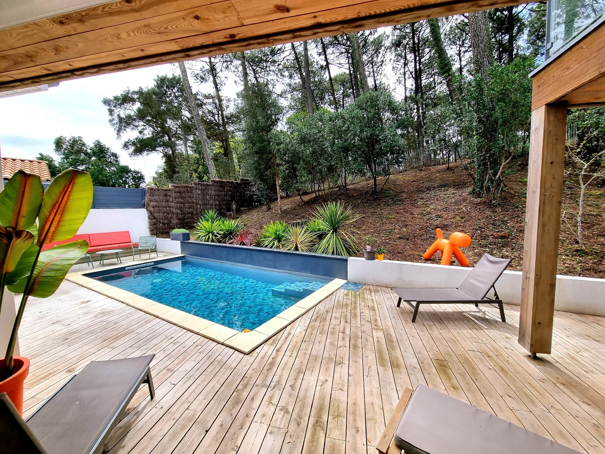 Située dans une impasse très calme, la maison offre un environnement paisible, à deux pas des plages de Seignosse et à proximité immédiate de la forêt et des pistes cyclables (100 m)