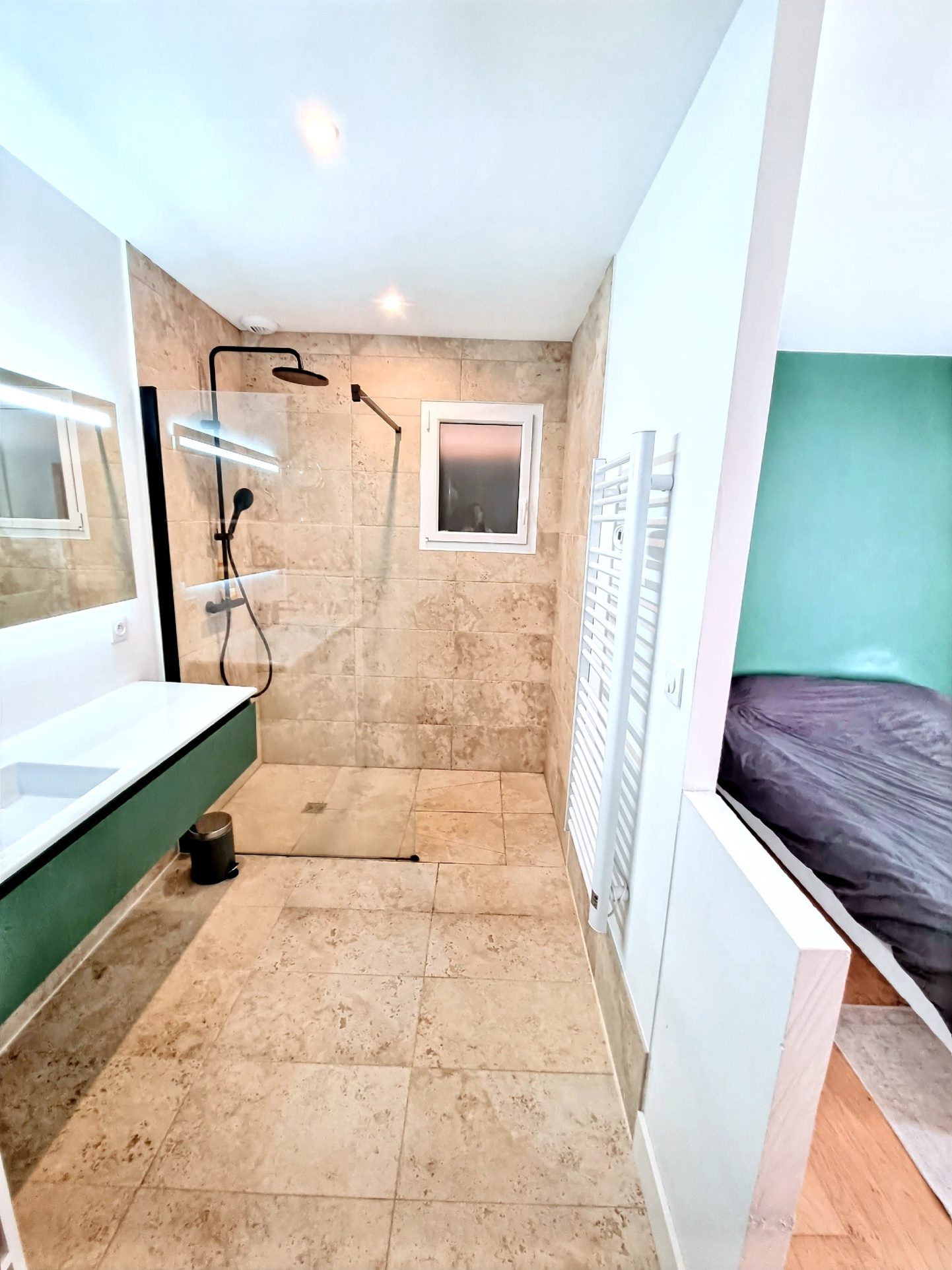 Salle d’eau avec douche, vasque et WC